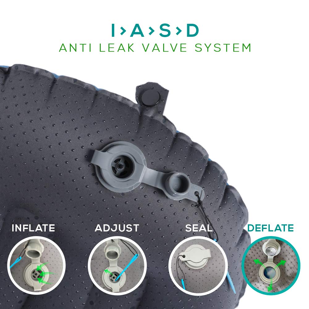- 𝐄𝐚𝐬𝐲 𝐭𝐨 𝐮𝐬𝐞 - 𝐀𝐝𝐣𝐮𝐬𝐭𝐚𝐛𝐥𝐞 𝐏𝐫𝐞𝐬𝐬𝐮𝐫𝐞 : It takes a 2 good breaths to set up Inflate > Adjust > Seal > Deflate Hence the name I>A>S>D 4 Step Anti Leak Valve System , to store just fold in half 3 times and roll and store it in it’s carry pouch