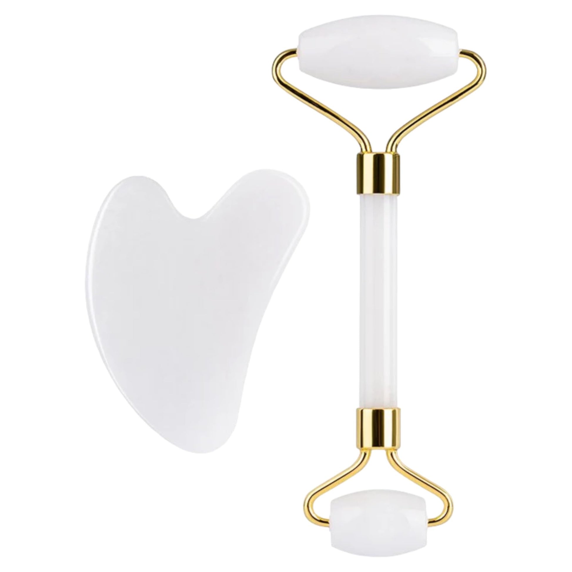 Generic Lucky LAMA White Jade Roller and Gua Sha 2 in 1 Set for Face and Body Anti Aging, Anti-Wrinkle, Reducing Puffiness and Redness Facial Tools Face Roller and Gua Sha Set for Men Women