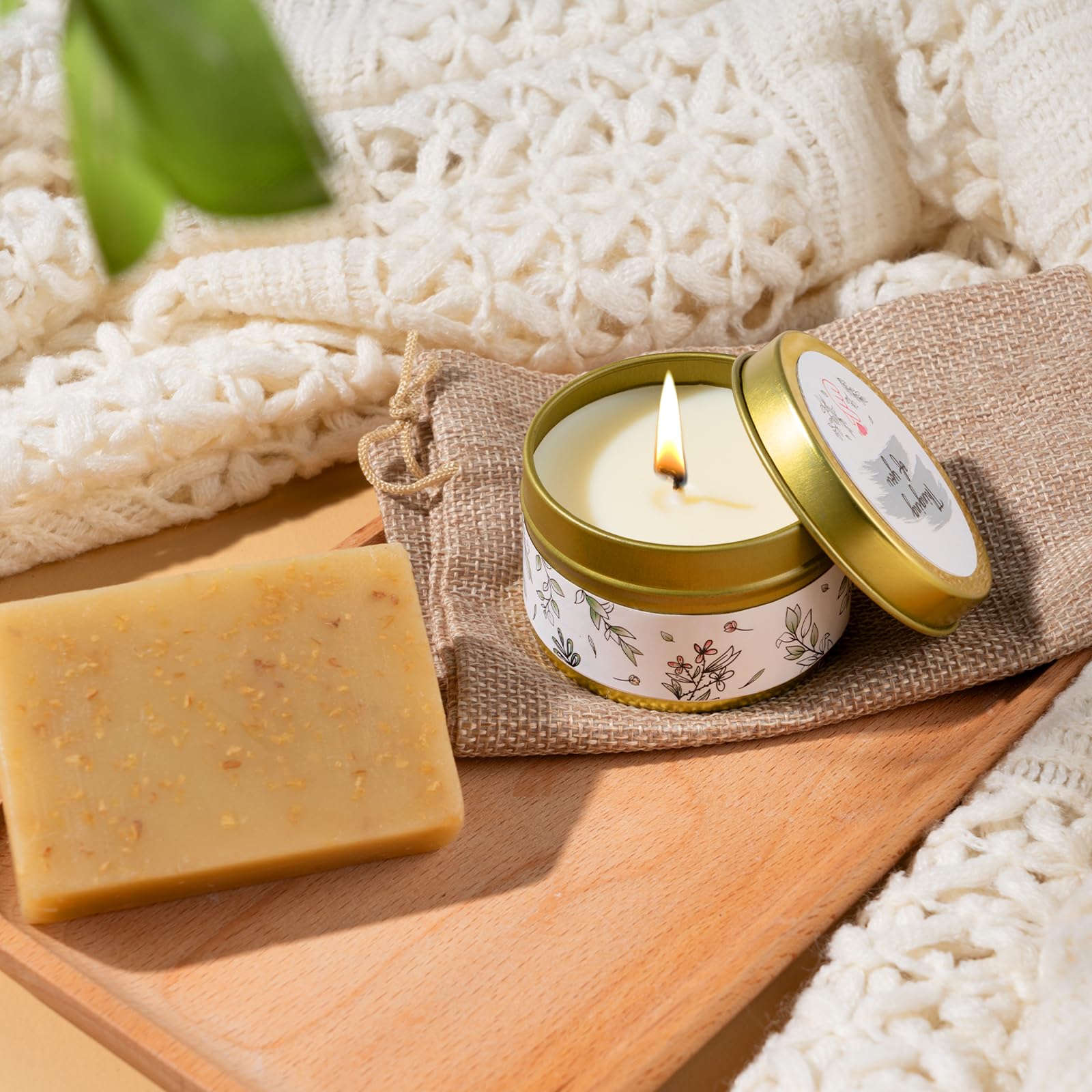 - 【Relaxing Spa Gifts】: A fragrance candle made from vanilla bean extracted from the vanilla plant, with top notes of mint, middle notes of vanilla and cinnamon, base notes of amber, lingering fragrance to help relieve stress. Paired with oat handmade soap in a sachet, you can provide your loved ones with a luxurious and relaxing spa bathing experience and bath spa gifts for women, also a good idea for birthday basket for women, get well care packages for women.get well gifts for women after surgery