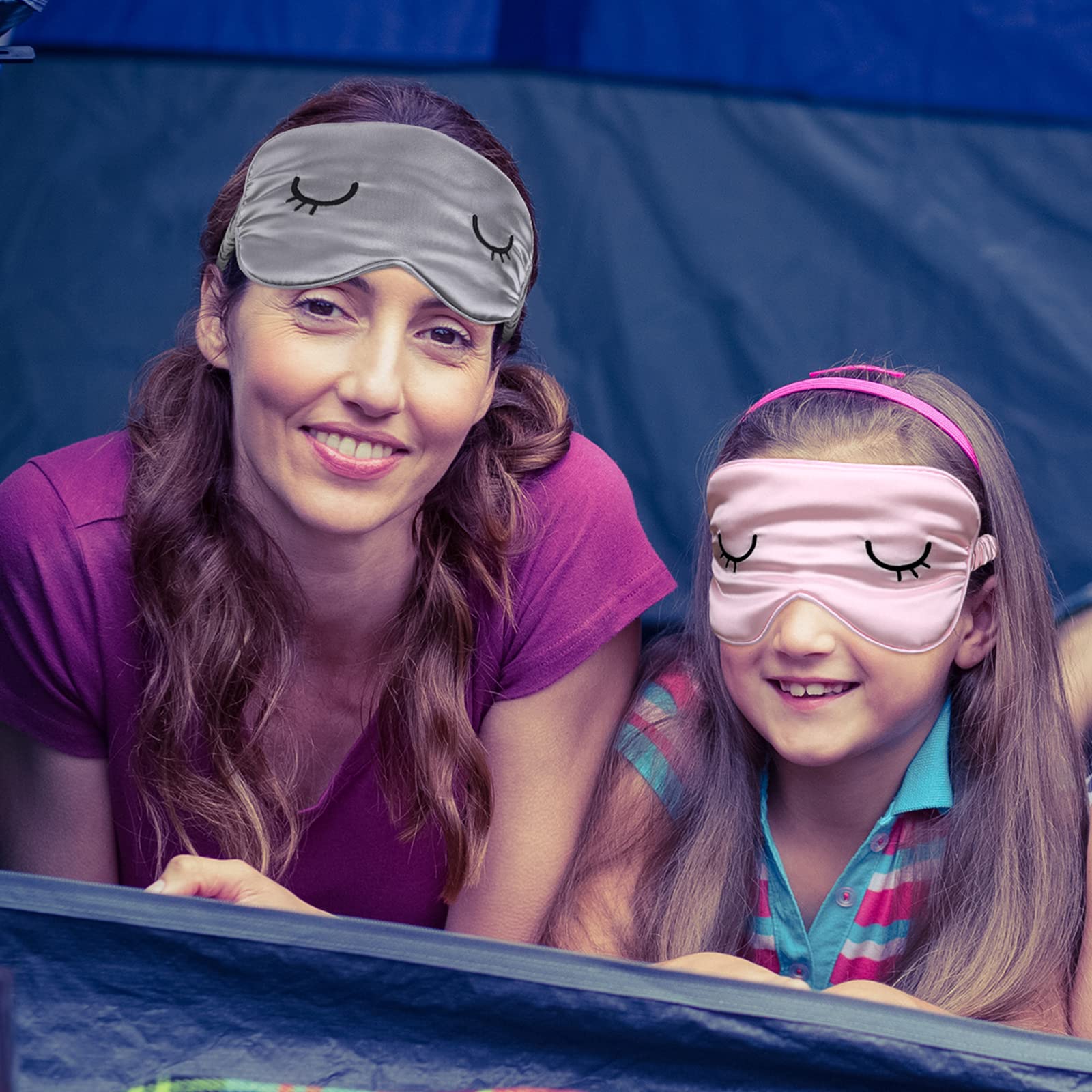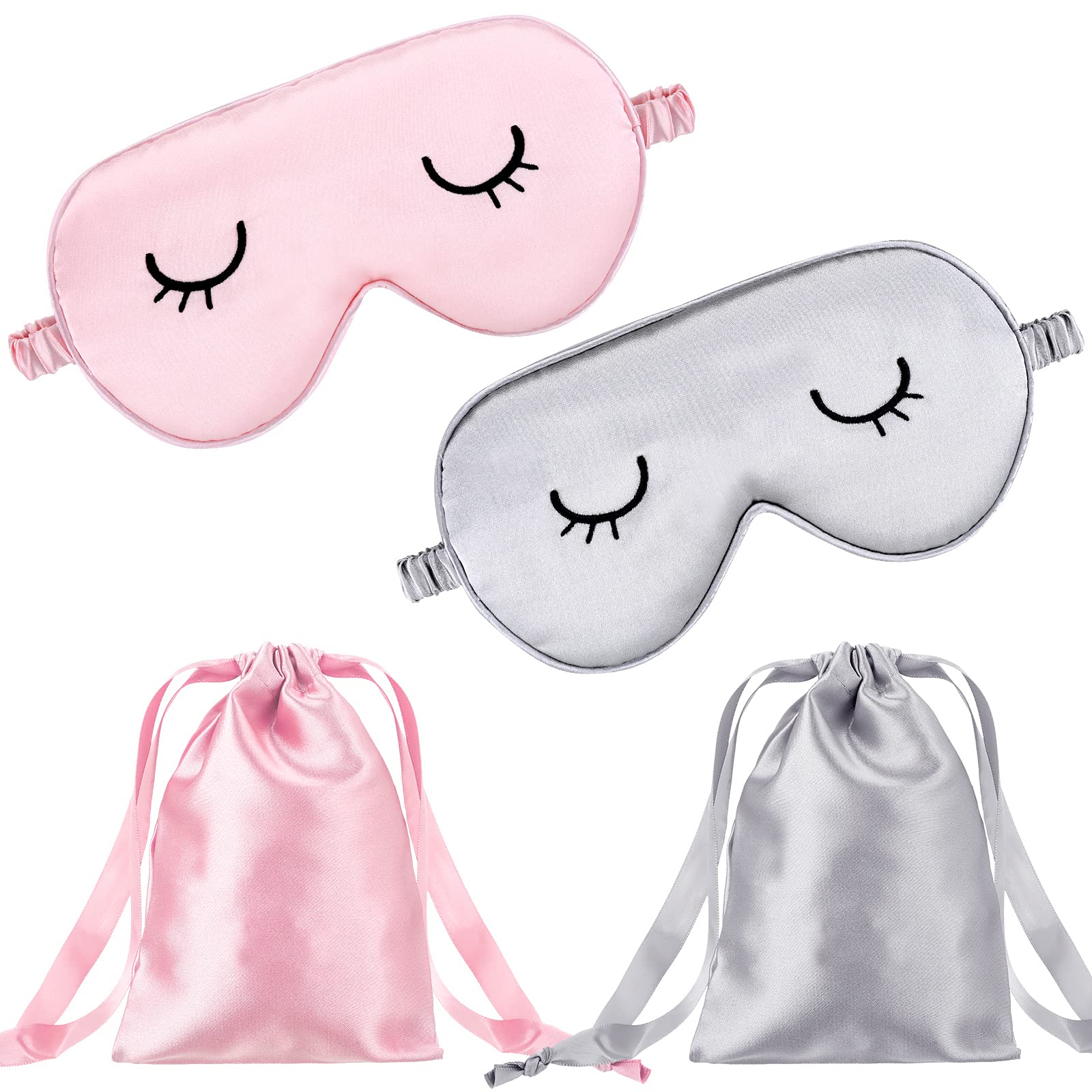 Geyoga 2 Pcs Cute Sleep Eye Masks for Adult Silk Sleep Eye Cover Cute Lightweight Adjustable Eyeshade Mask Satin Night Eyeshade Covers with 2 Pcs Storage Bag(Adult, Pink, Gray)