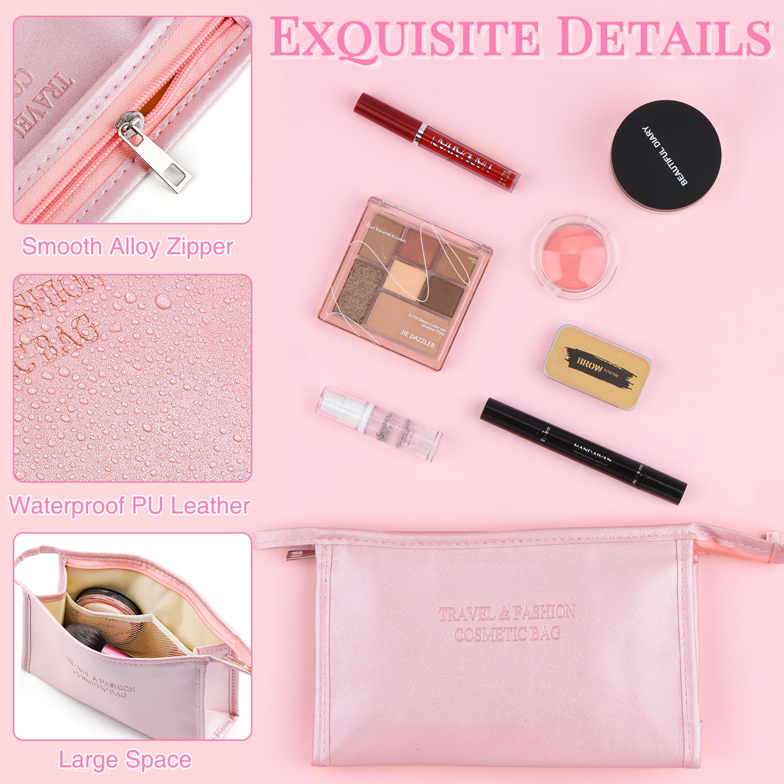 - 【Large Capacity High Quality Makeup Bag】: Our makeup bag is made of high quality waterproof PU leather material,durable and stylish,and also a multifunctional makeup bag for travel.This makeup bag is easy to clean,not easy to fade,not easy to deform,not easy to break,and has a long service life;moreover,the classical design looks rich in texture,and there is an internal pocket that provides additional storage space for easy access,and the large space is enough to place travel items such as toothbrushes,deodorants,travel shampoo,toothpaste,skin care products,and cosmetics