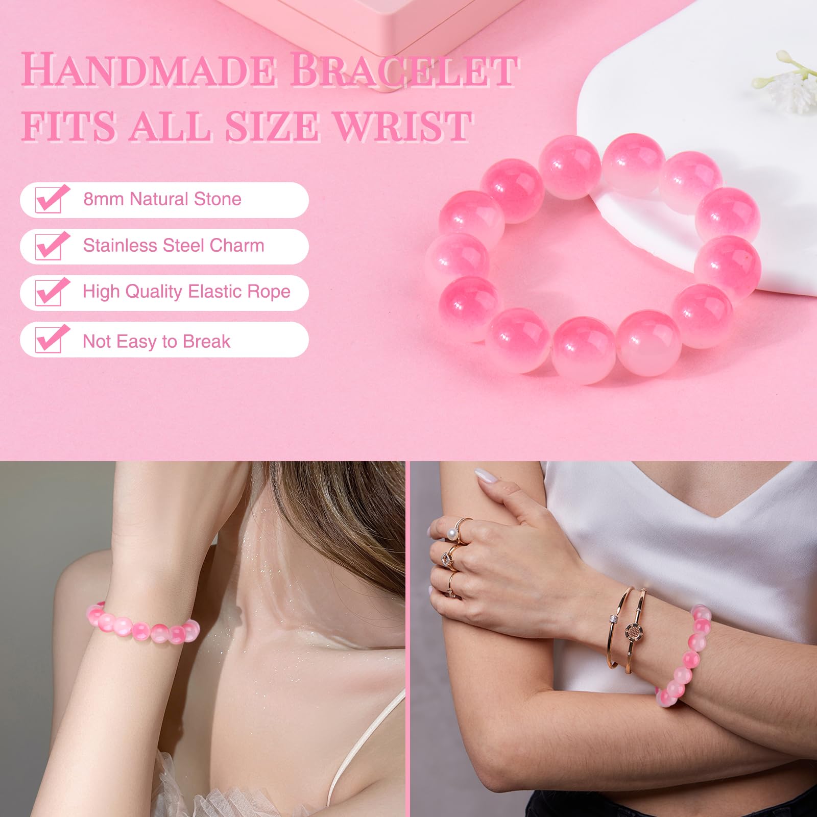 - 【Reliable Quality and Excellent Products】: The pink crystal beaded bracelet uses natural gemstones,which are not easily damaged,and comes with a sturdy elastic rope,which fits most women's wrists and transmits her positive energy.The candle is made of 100% soy wax,which burns smoothly and has a pleasant aroma,bringing you a happy mood