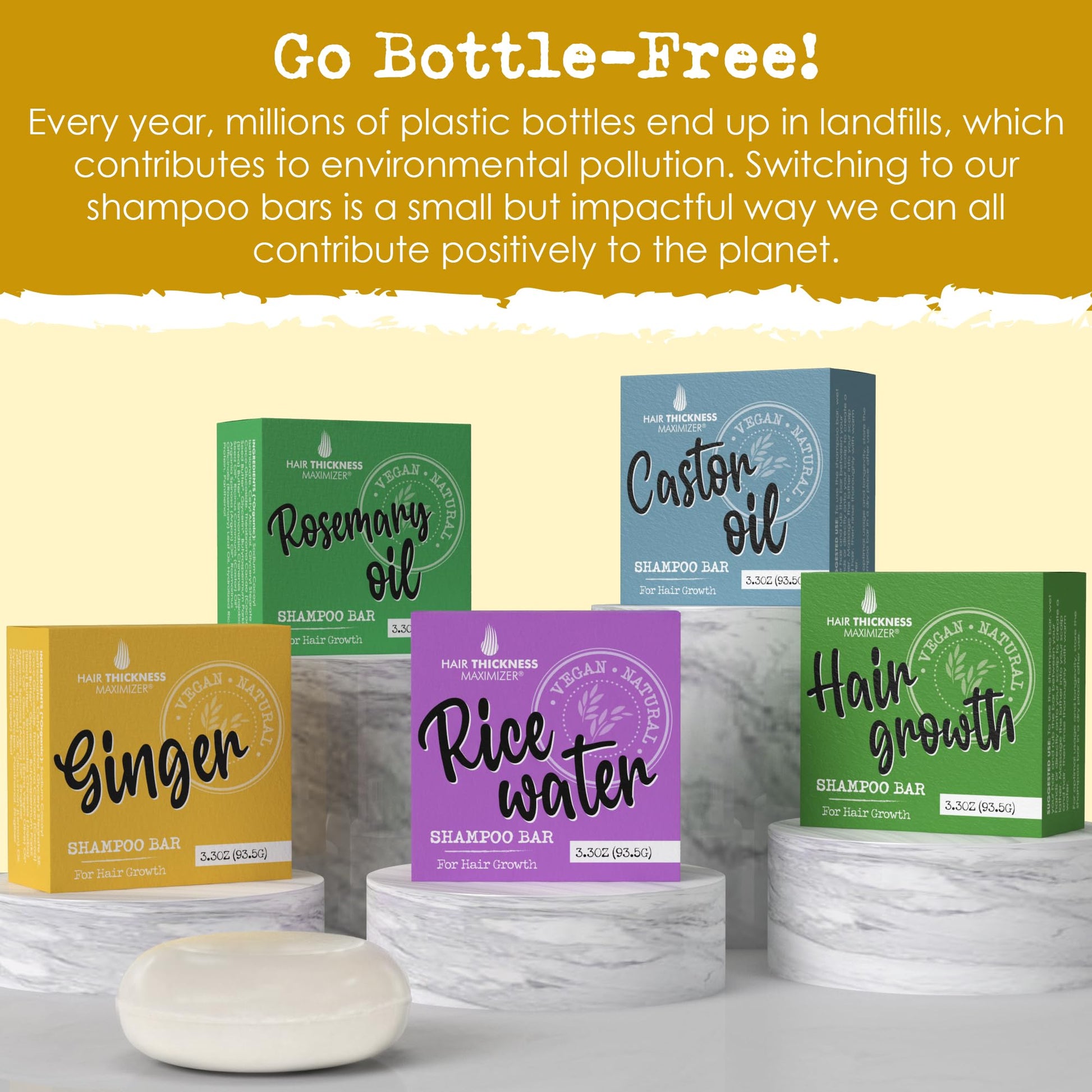 - Go Bottle-Free! Every year, millions of plastic bottles end up in landfills, which contributes to environmental pollution. Switching to our shampoo bars is a small but impactful way we can all contribute positively to the planet.