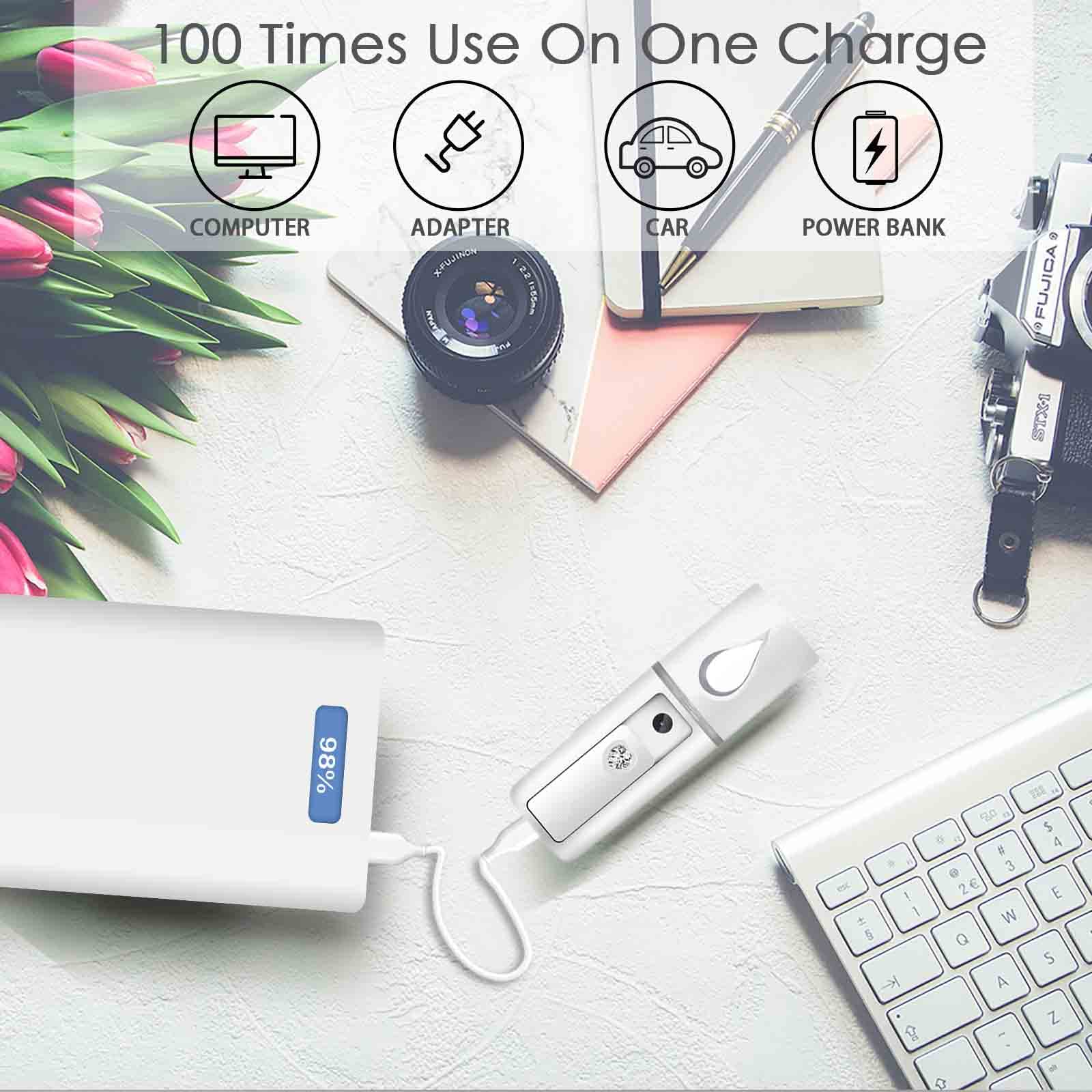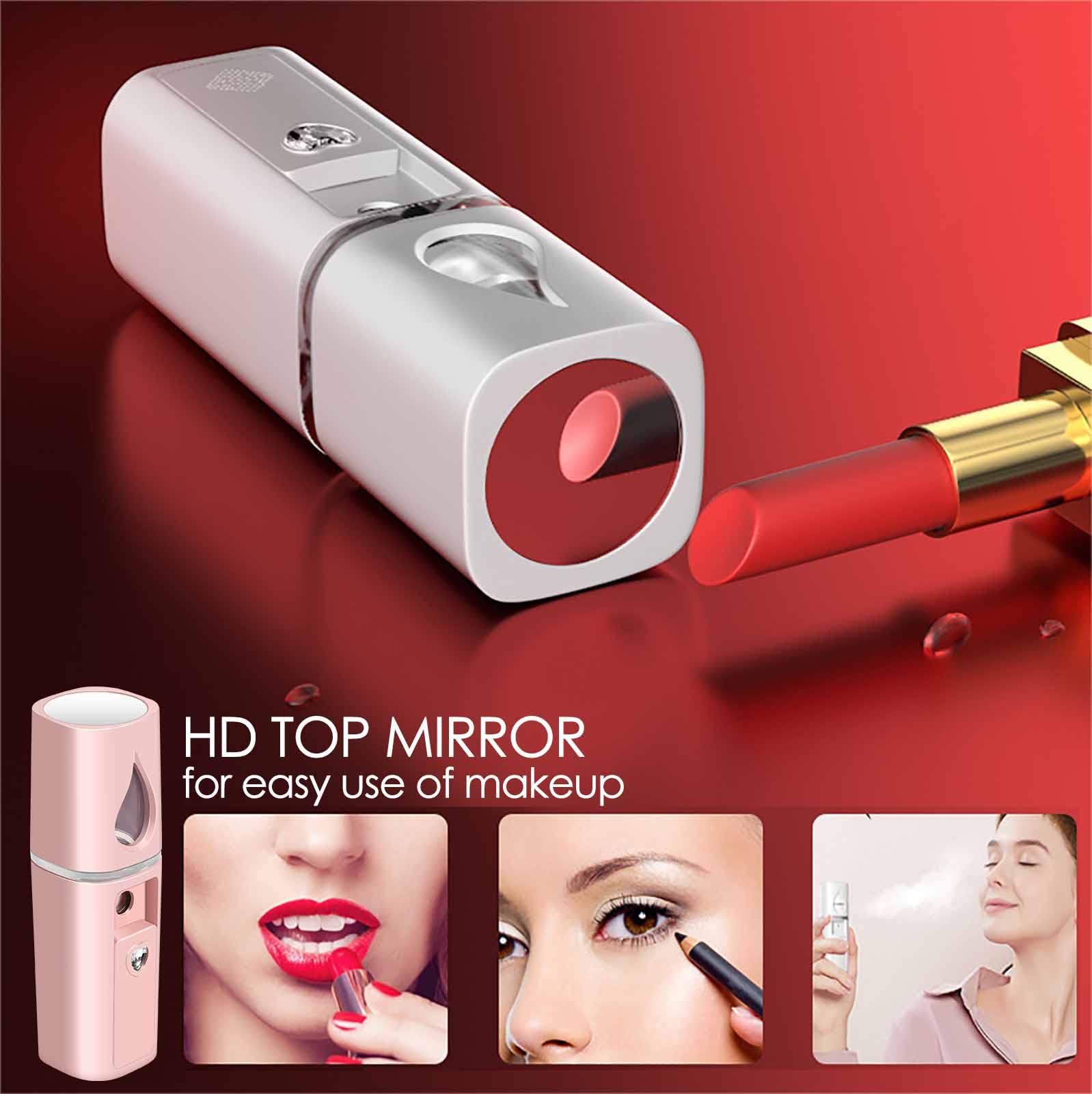 - Top Mirror & Large Water Tank: A mirror on the top, a 30 ml large water tank, and a built-in quality battery, 100 times uses for 1 full charge (auto power off for every 3 min). This mister also has a patented clean system to make sure 100% clean mist