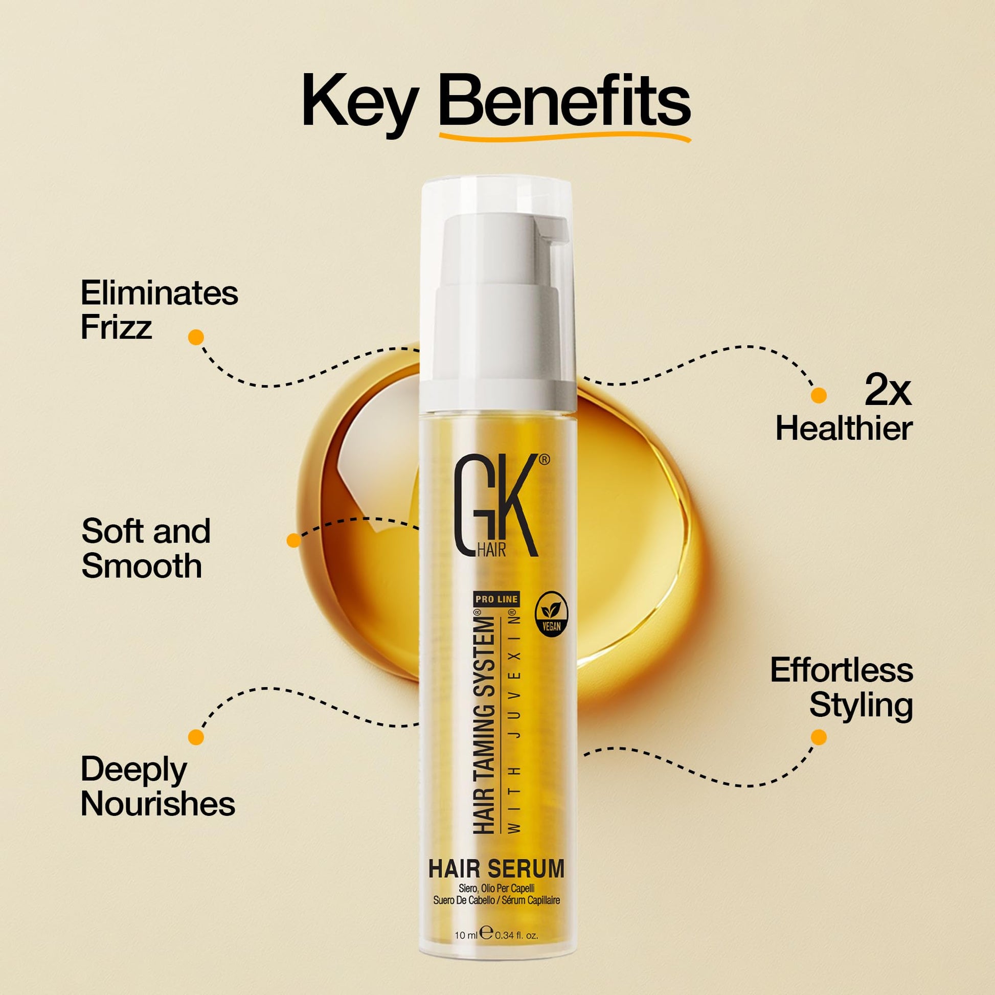 GK HAIR Global Keratin 100% Organic Argan Oil Anti Frizz Mini Serum (0.34 Fl Oz/10ml) Styling Smoothing Strengthening Hydrating & Nourishing Heat Protection Shine Frizz Control Dry Damage Hair Repair