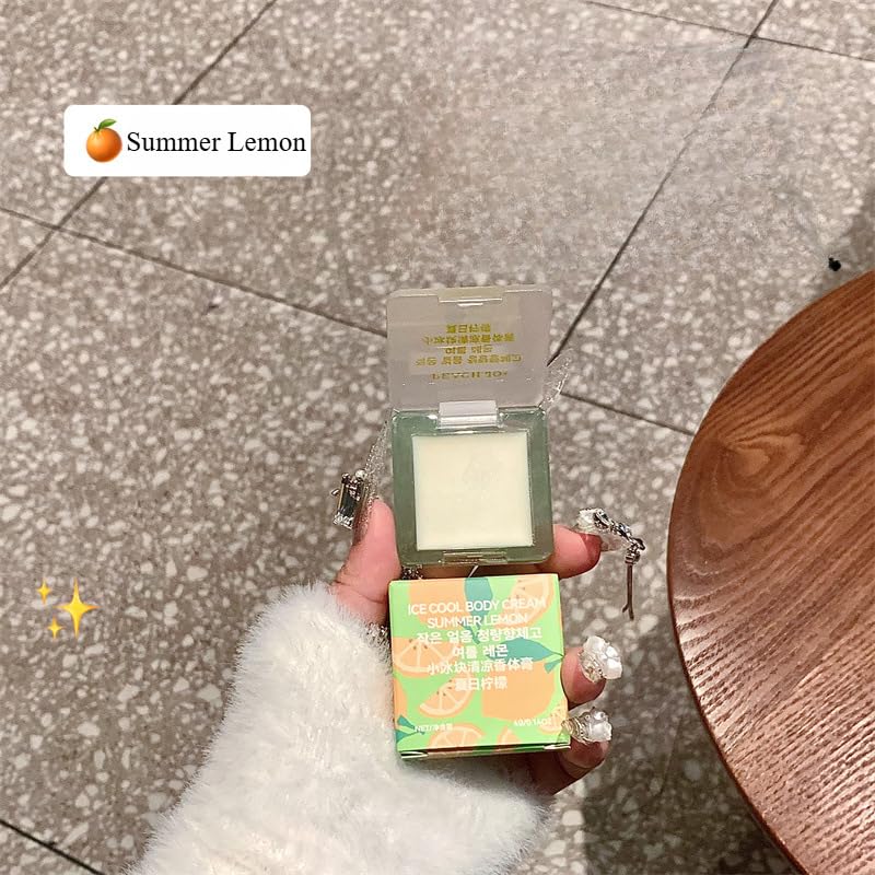 GKSHSU Mini Ice Cube Cooling Solid Perfume Balm - Refreshing Fruity Scent with Shimmer Highlighter, Long-Lasting Fragrance & Odor Neutralizer for Women (Portable Skin Glow) (Coastal Lemon Mist)