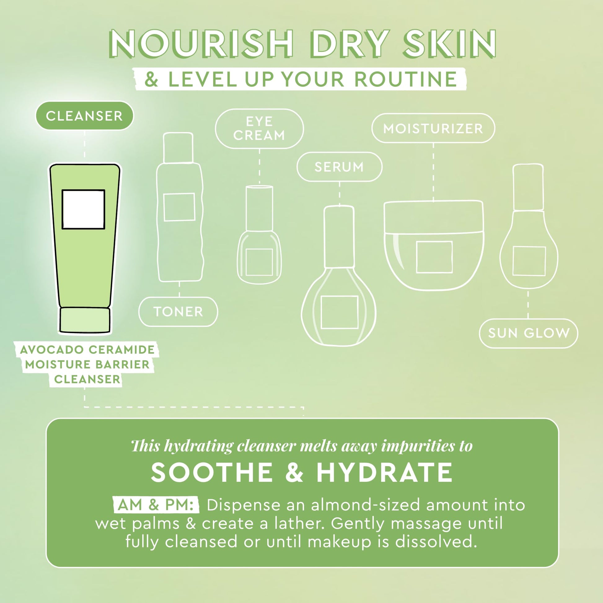 - Avocado Ceramide Moisture Barrier Cleanser - With an improved creamy gel-to-foam texture and now hyaluronic acid, this nourishing cleanser gently yet effectively melts away impurities to reveal softer, refreshed skin. Packed with colloidal oatmeal and avocado to soothe and hydrate while ceramides and pre + postbiotics strengthen skin’s barrier.