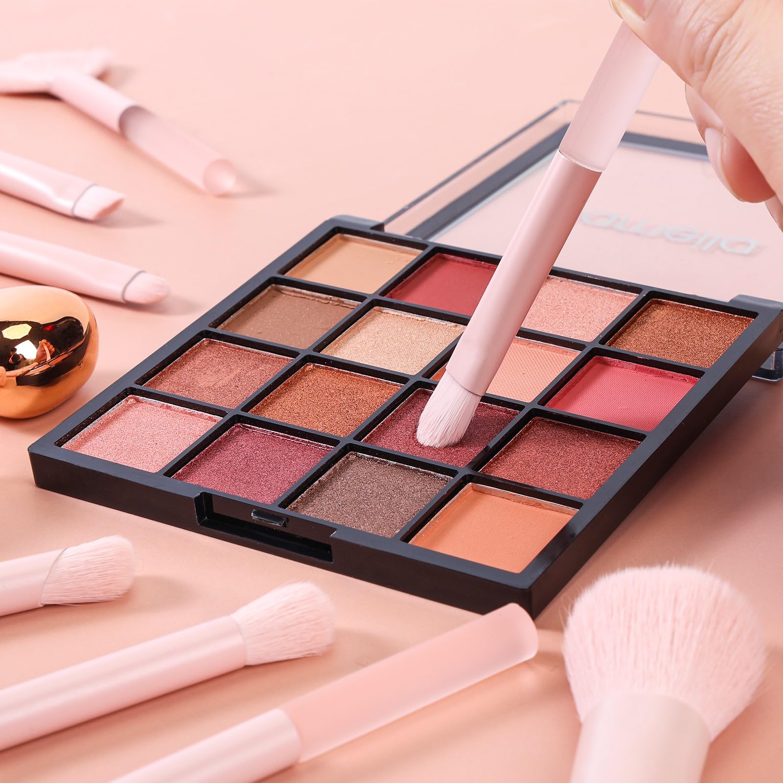 - 11 PIECE BRUSH SET : Travel size makeup brush, includes all the brushes needed to do daily makeup looks. Powder, Foundation, Blush, Fan, Highlight, Eyeshadow Contour, Shadows, Lips, Eyebrow, Concealer and Angled Kabuki Brush. This travel makeup brushes can help you create a beautiful makeup.