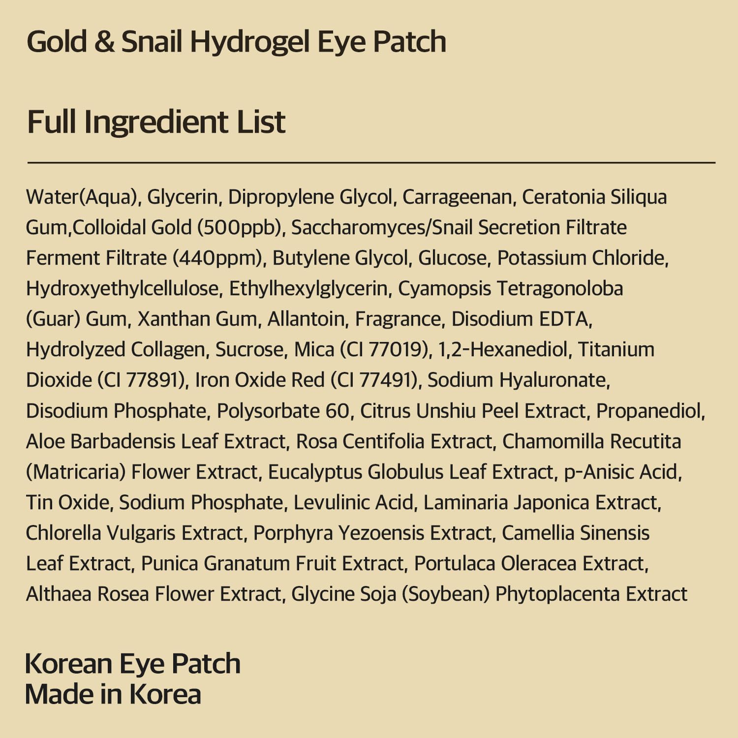 Gold & Snail Hydrogel Eye Patch 60 pcs - Hydrating Under-Eye Gel Patches with Snail Secretion Filtrate, Colloidal Gold and Collagen for Revitalizing Care, Korean Skincare