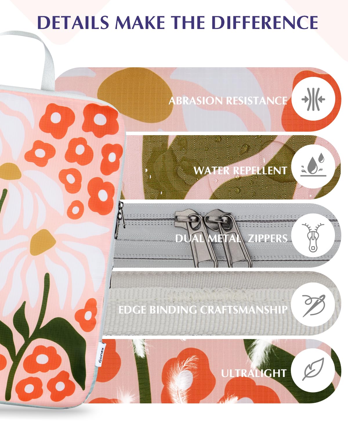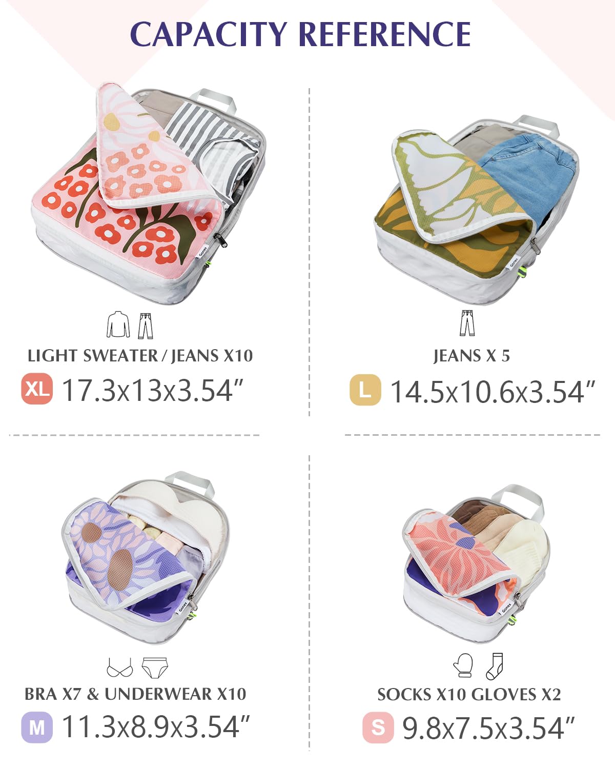Gonex Compression Packing Cubes, 4pcs Expandable Storage Travel Luggage Bags Organizers, Travel Cubes for Suitcase Carry On (Flowers)