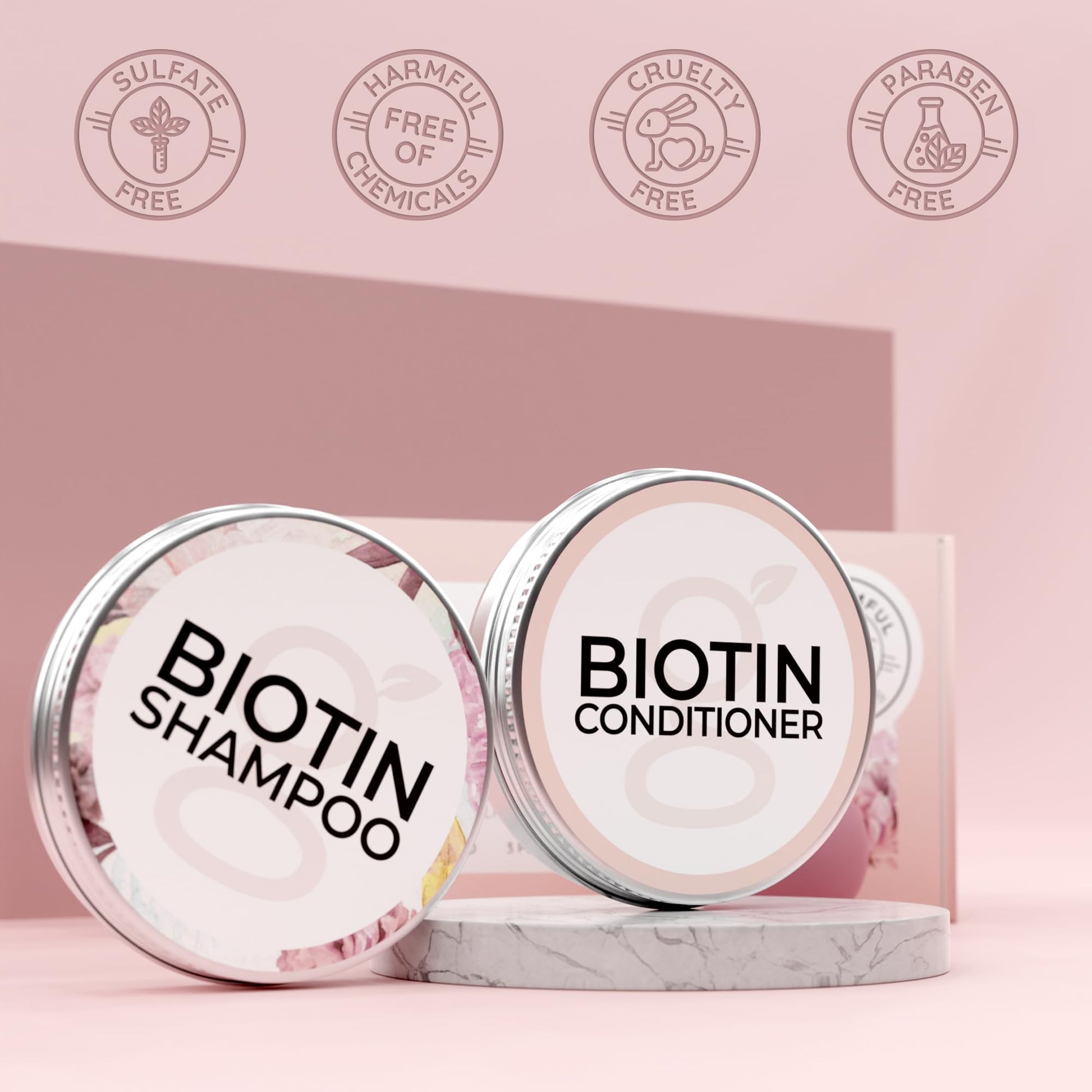 - đ BEAUTIFUL HAIR: Our Biotin Shampoo and Conditioner Set is the perfect set for your hair. Our shampoo with biotin is great for hair growth and it also helps combat dryness and breakage. This solid biotin shampoo and conditioner bar helps to thicken your hair while boosting new hair regrowth.