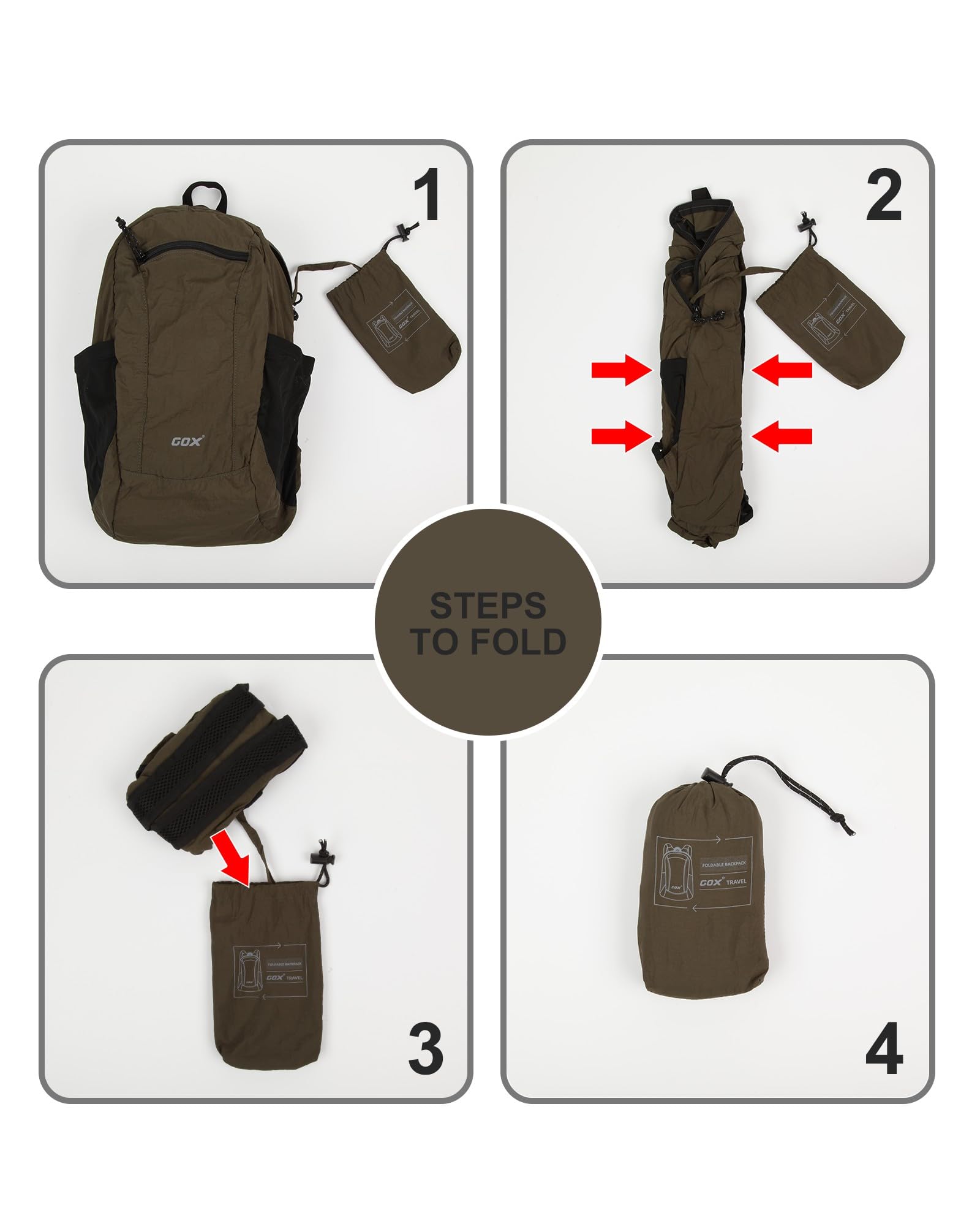 GOX Foldable 20l Backpack For Travel Lightweight Hiking Packable Daypack for Men Travel Camping Outdoor Bag Women (Jasper)