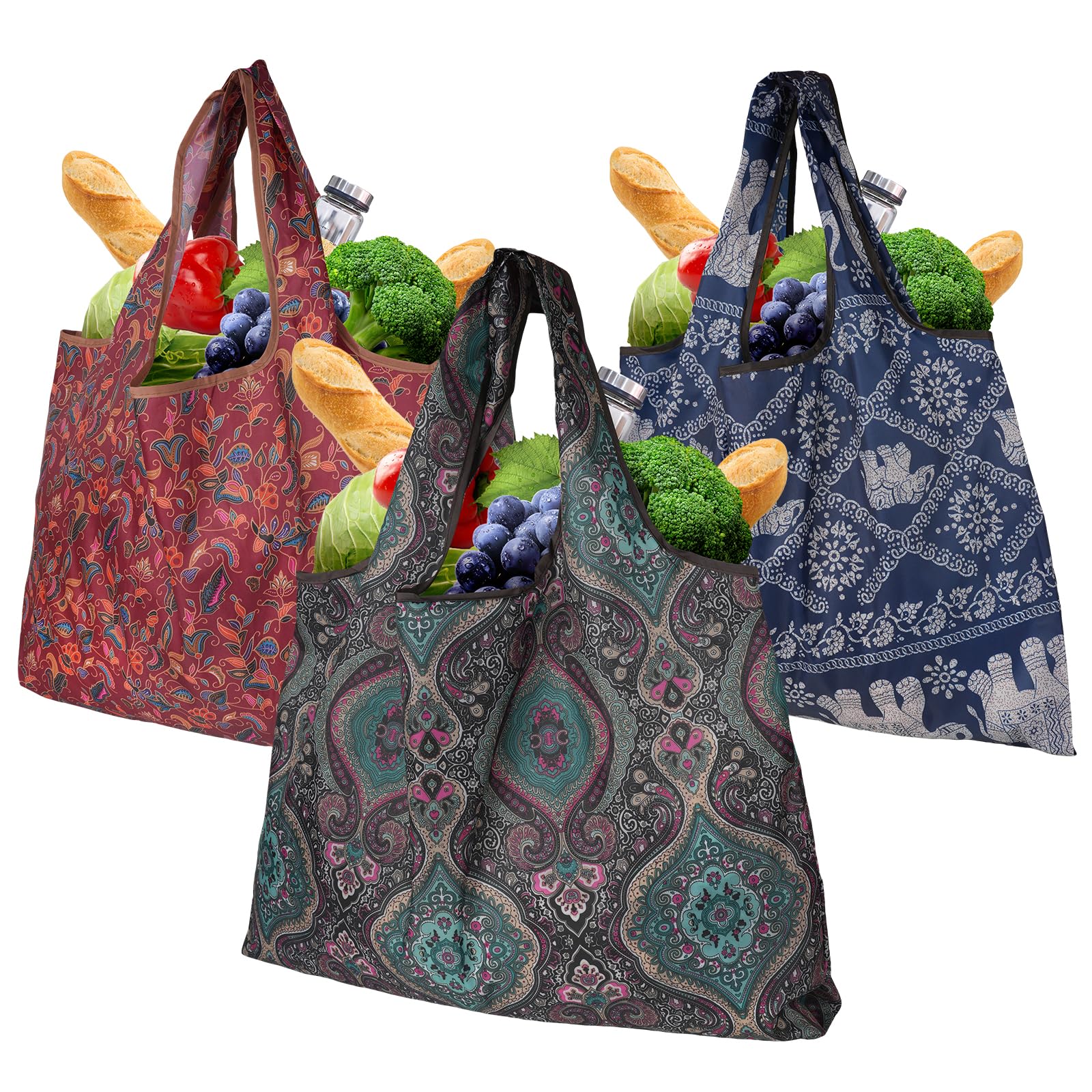gracefuLife Foldable Grocery Bag Set of 3, Large Capacity 22x15in, Holds up to 44lb,Reusable Shopping Bags For Travel, Storage, and More, Soft Fabric with vivid Patterns