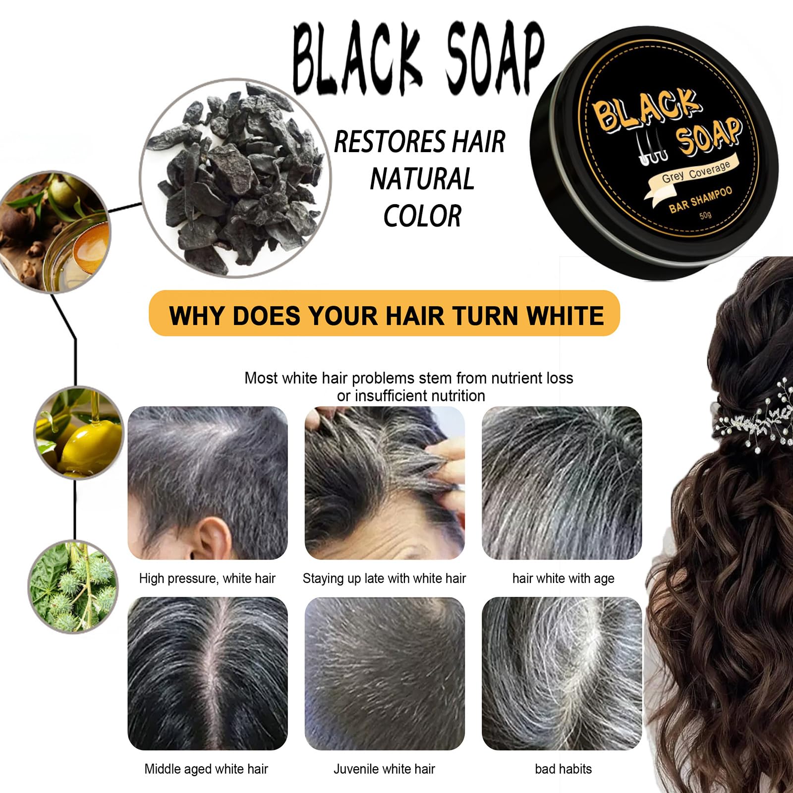 - Soothe & Refresh Your Scalp This black soap purifies the scalp, reducing irritation, flakiness, and excess oil. Regular use maintains moisture balance, minimizes dandruff, and supports a healthier environment for hair to regain its natural hue