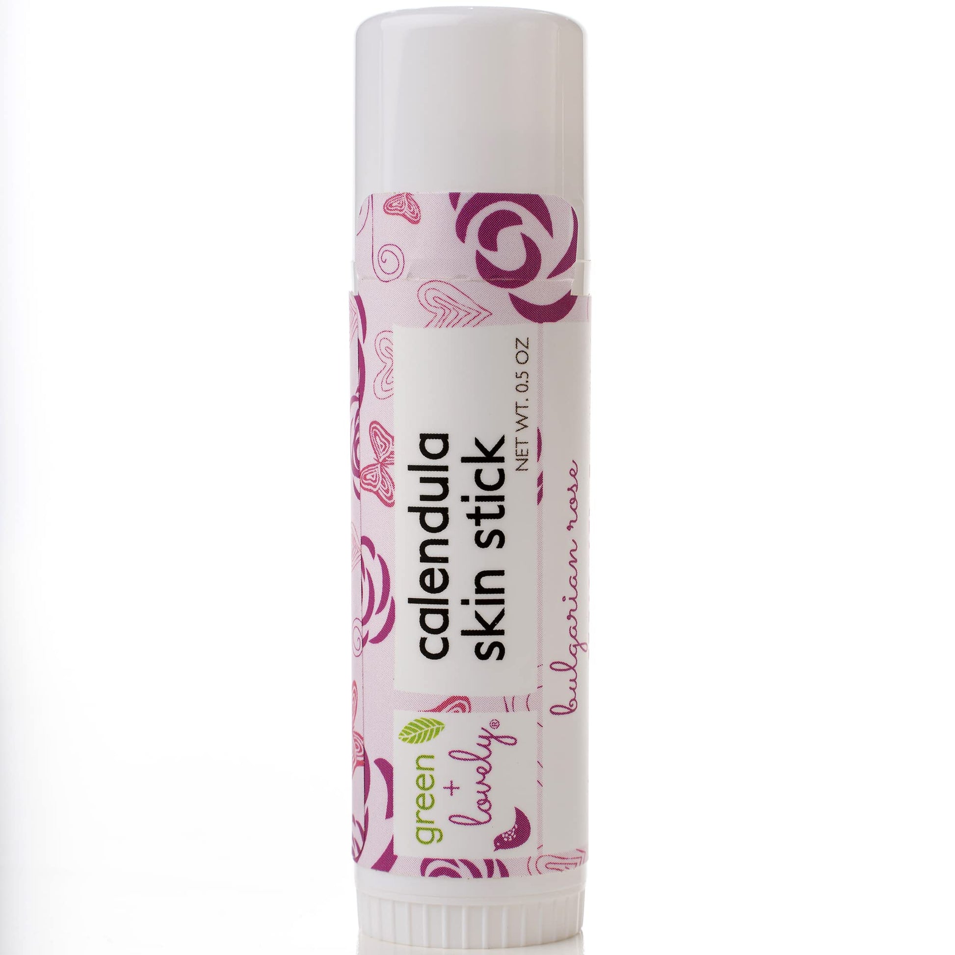 Green + Lovely Calendula Skin Stick Organic Lotion Sticks Moisturizing Balm Ointment Salve Multipurpose Hand Cream Body Bar, 0.5 oz., Bulgarian Rose (1 tube set)