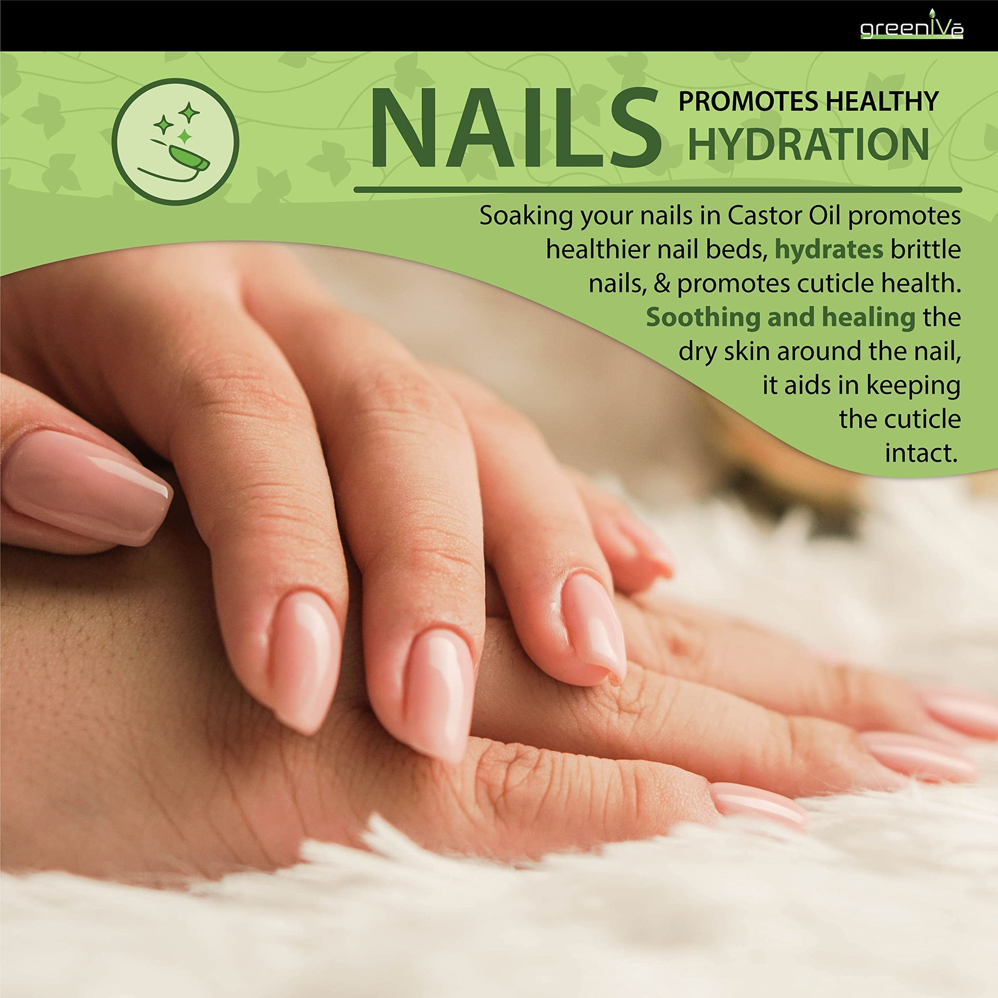 - HAIR: Rich in Vitamins and Fatty Acids GreenIVe Castor Oil is excellent for Hair. Assisting in growth and strength of hair. Simply massage into the roots and work your way outward. Can also be used on eyelashes