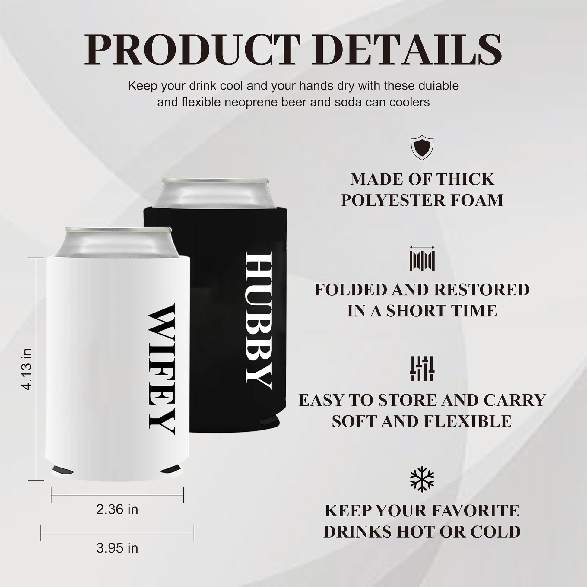 - Versatile and Practical: The can coolers are perfect for weddings, engagements, honeymoon trips between couples and bridal shower.This is a practical and unique gift for newlyweds.