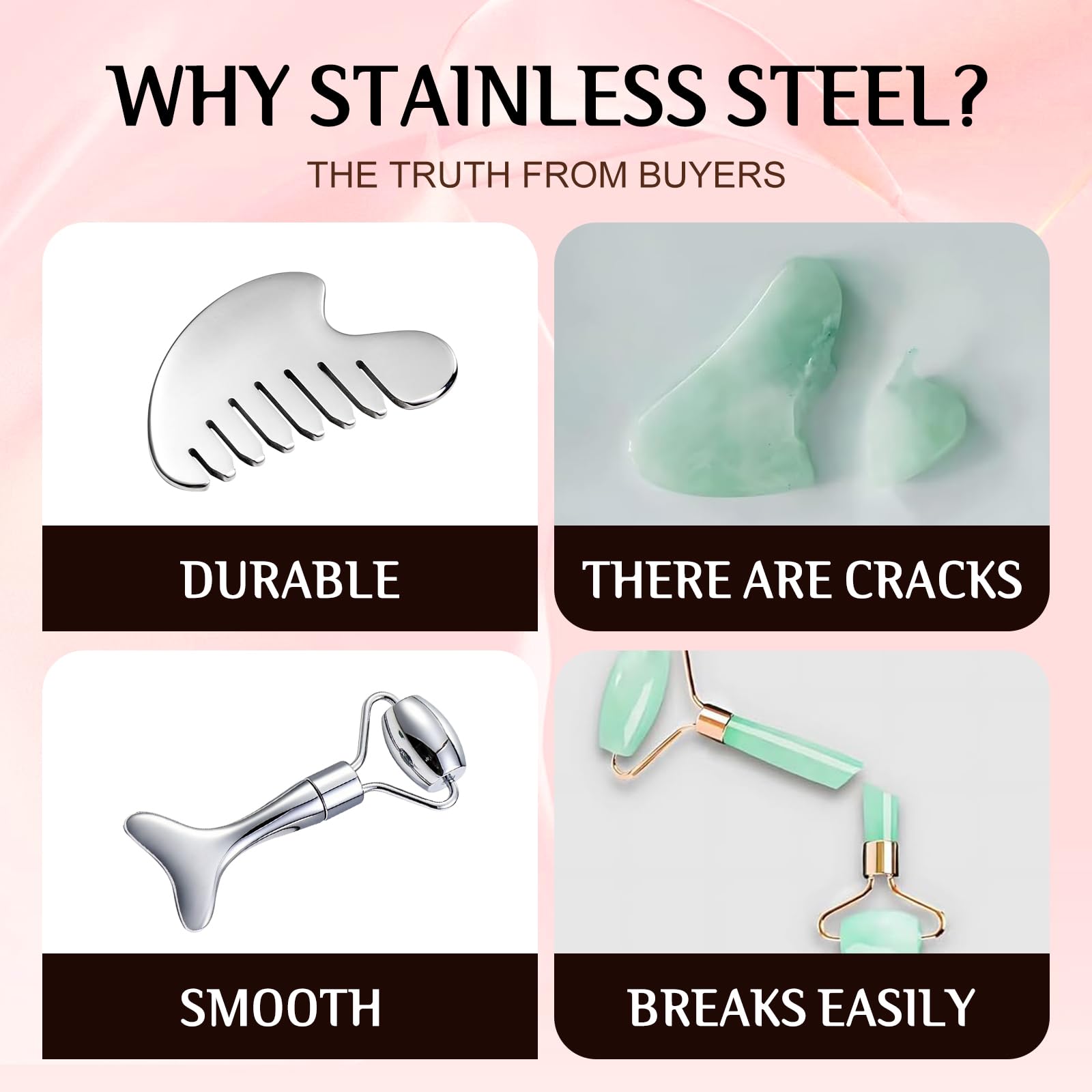 - 【Sturdy And Durable】This gua sha tool for face and stainless steel face roller are made entirely of metal, offering a cooling, refreshing feel that elevates your skincare routine. Ideal for those who love high-quality face massager tools