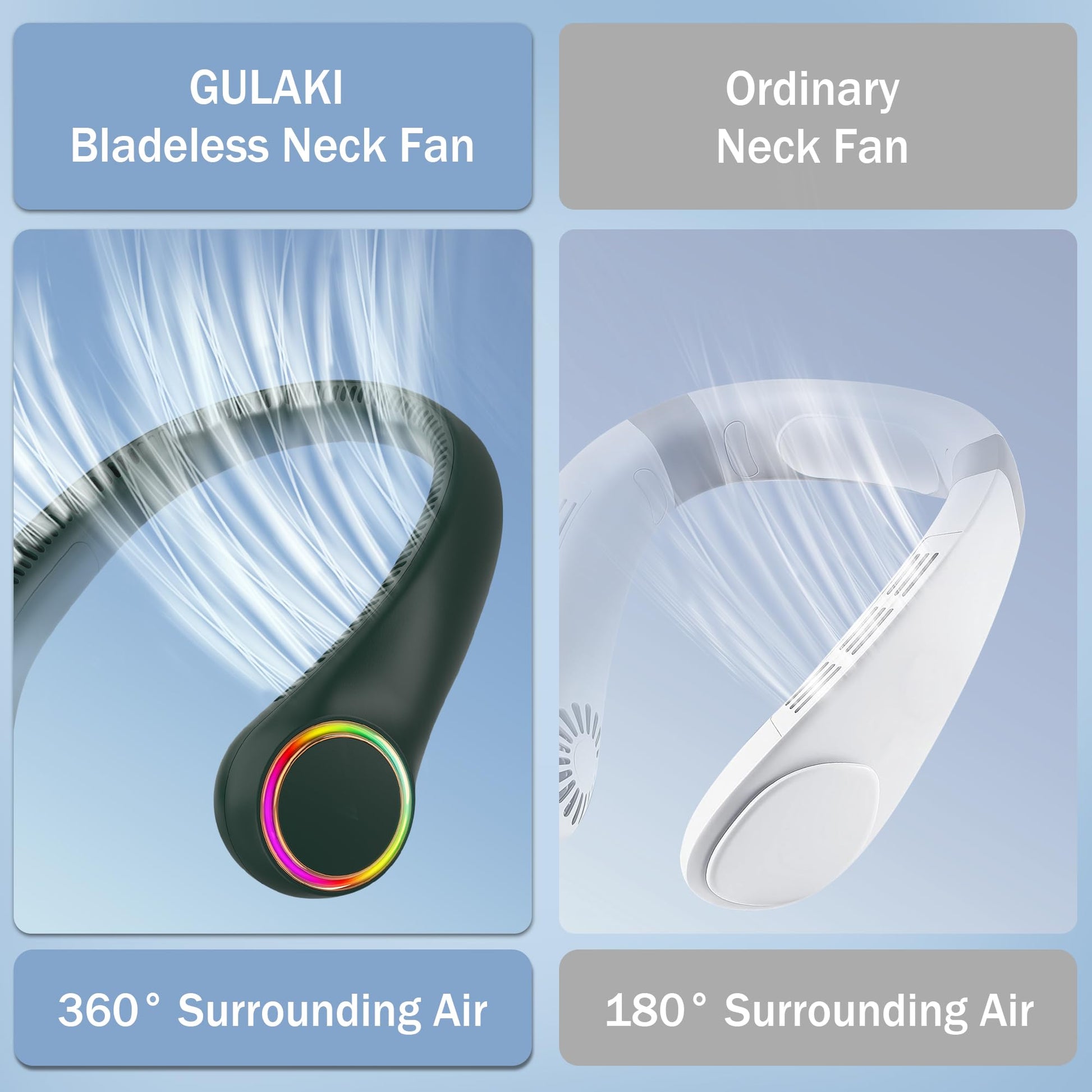 GULAKI Bladeless Portable Neck Fan - Rechargeable Hands Free USB Personal Fan Battery Operated with LED lights for Home Office Travel Indoor Outdoor (Dark Green)