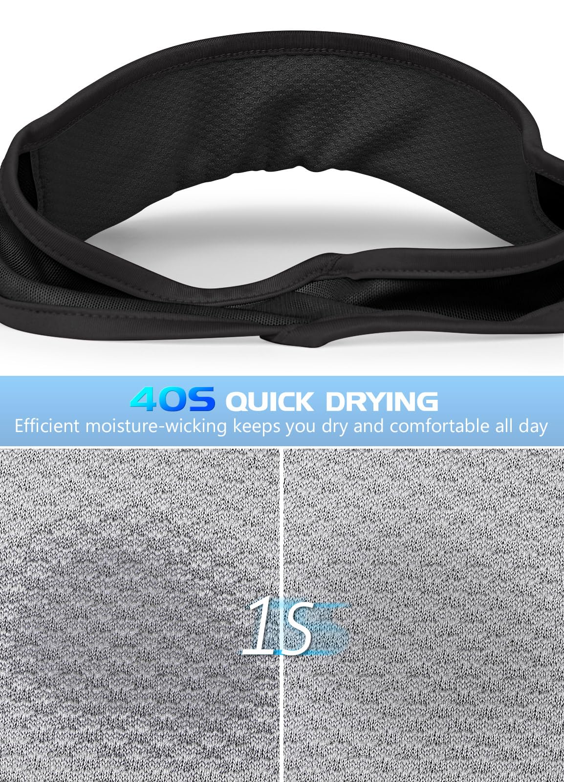 - BREATHABLE & COMFORT: Crafted with stretchy mesh fabric and sweat-absorbent inner lining, this lightweight visor ensures all-day comfort without pressure (fits head sizes 20.5-23.6 inches).