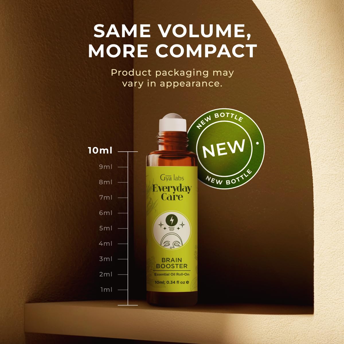 Gya Labs Brain Booster Essential Oil Roll on - Refreshing Brain Essential Oils Roller, 100% Pure Natural, Blend with Rosemary, Sandalwood, Lemongrass & Grapefruit, Travel Size (0.34 Fl Oz)