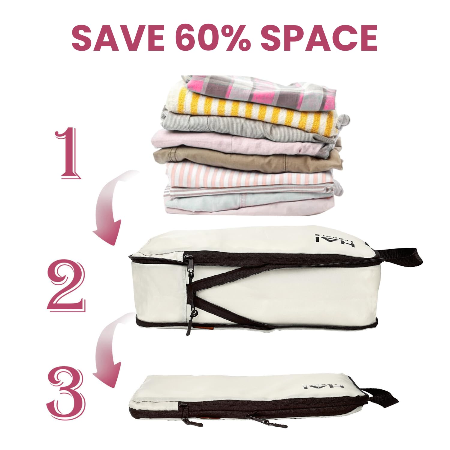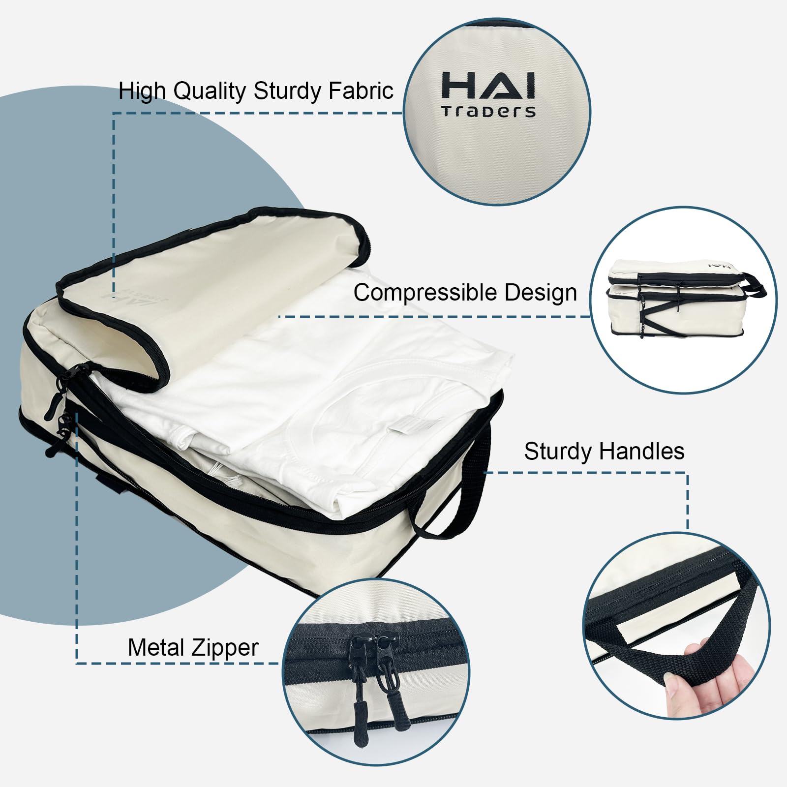 HAI TRADERS Compression Packing Cubes for Travel – 3 Pack Luggage Organizer Bags for Suitcases, Carry-On & Backpacks – Lightweight, Space Saver Clothes Storage Cubes