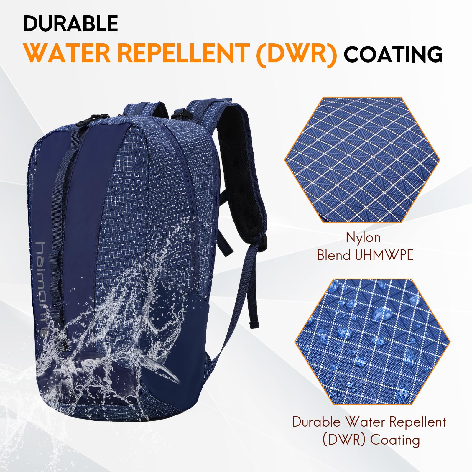 - Sturdy & Water-Resistant: Haimont lightweight outdoor backpack is made of high quality polyester fabric with durable water repellent (DWR) coating, this burly ripstop fabric won't wear down after tons of tough trips/outdoor activities