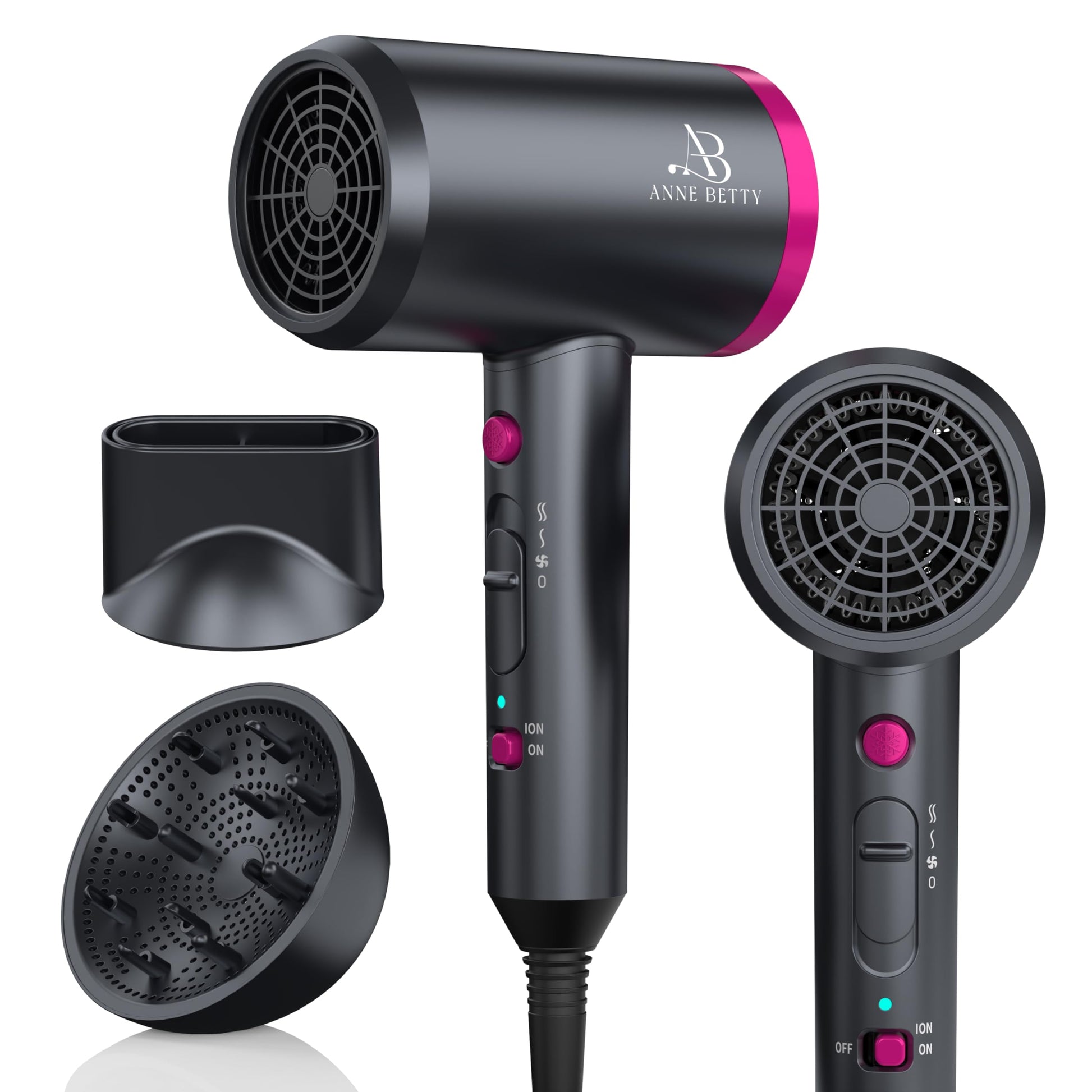 Hair Dryer with Diffuser for Curly Hair, 1800W Ionic Blow Dryer for Women & Men, Fast-Drying, Lightweight, Low Noise, Hair Care Styling Tool for Home, Travel