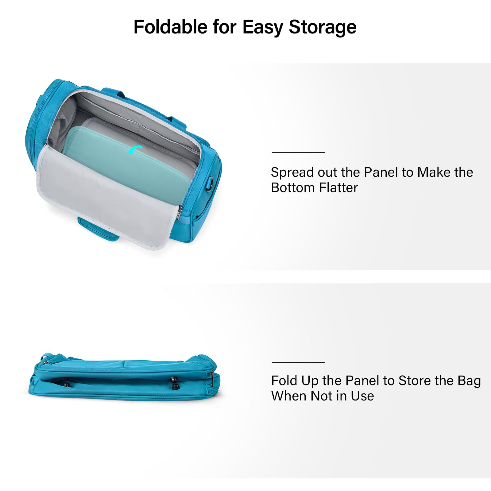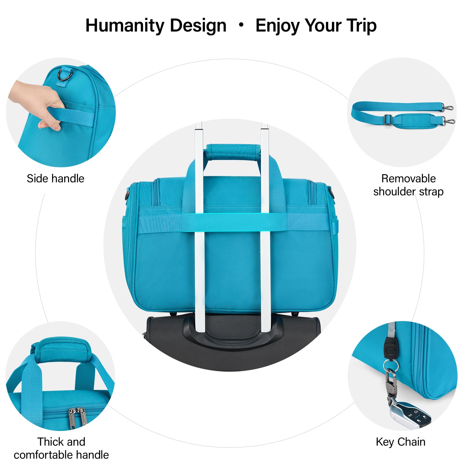 Hanke Foldable Underseat Carry On luggage Bag, Travel Tote Bag for Women & Men, Personal Item Travel Bag Softside Lightweight Luggage Bags for Travel Flight Crew Overnight Weekender.(Caribbean Blue)