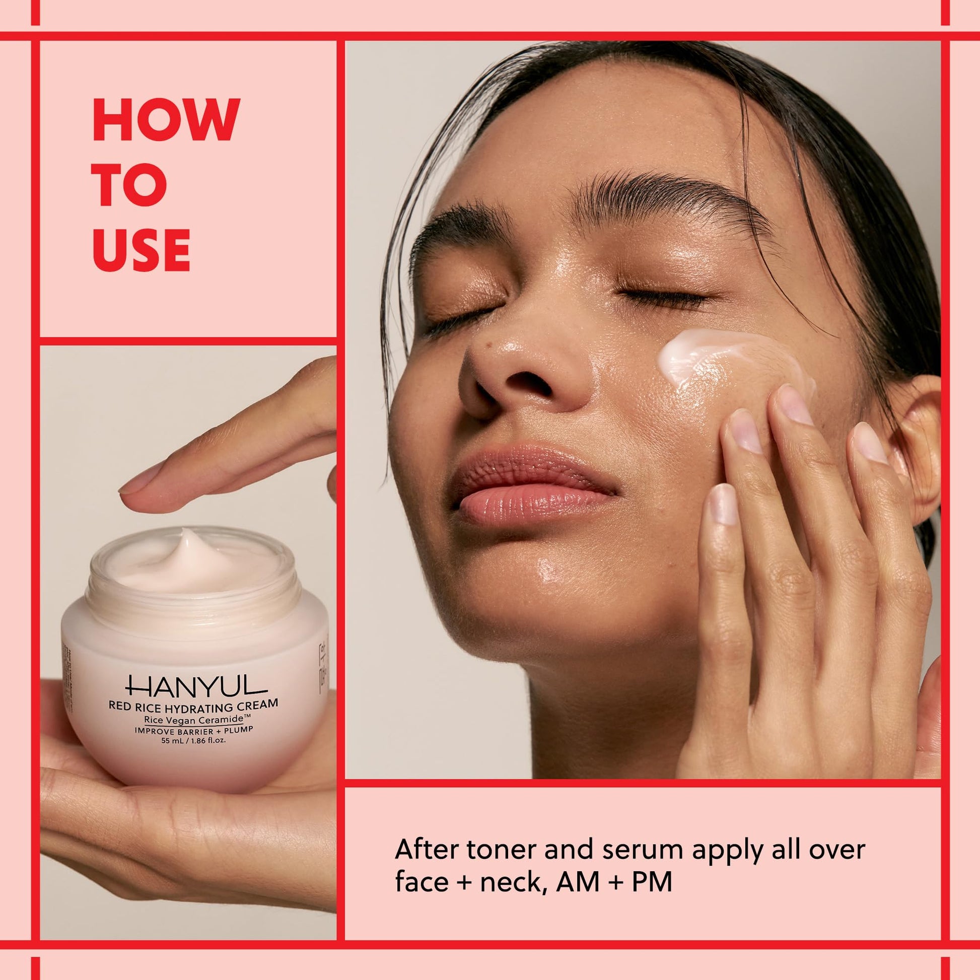 - EXCEPTIONAL HYDRATION WITH YEOJU RICE – Unveil the secret to deeply hydrated skin with HANYUL Red Rice Hydrating Cream. Enriched with fermented Yeoju Rice that holds moisture 690 times its size, this cream delivers an incredible amount of hydration. Embrace the ancient Korean beauty ritual that uses rice's natural properties for a moisturized and smooth complexion.