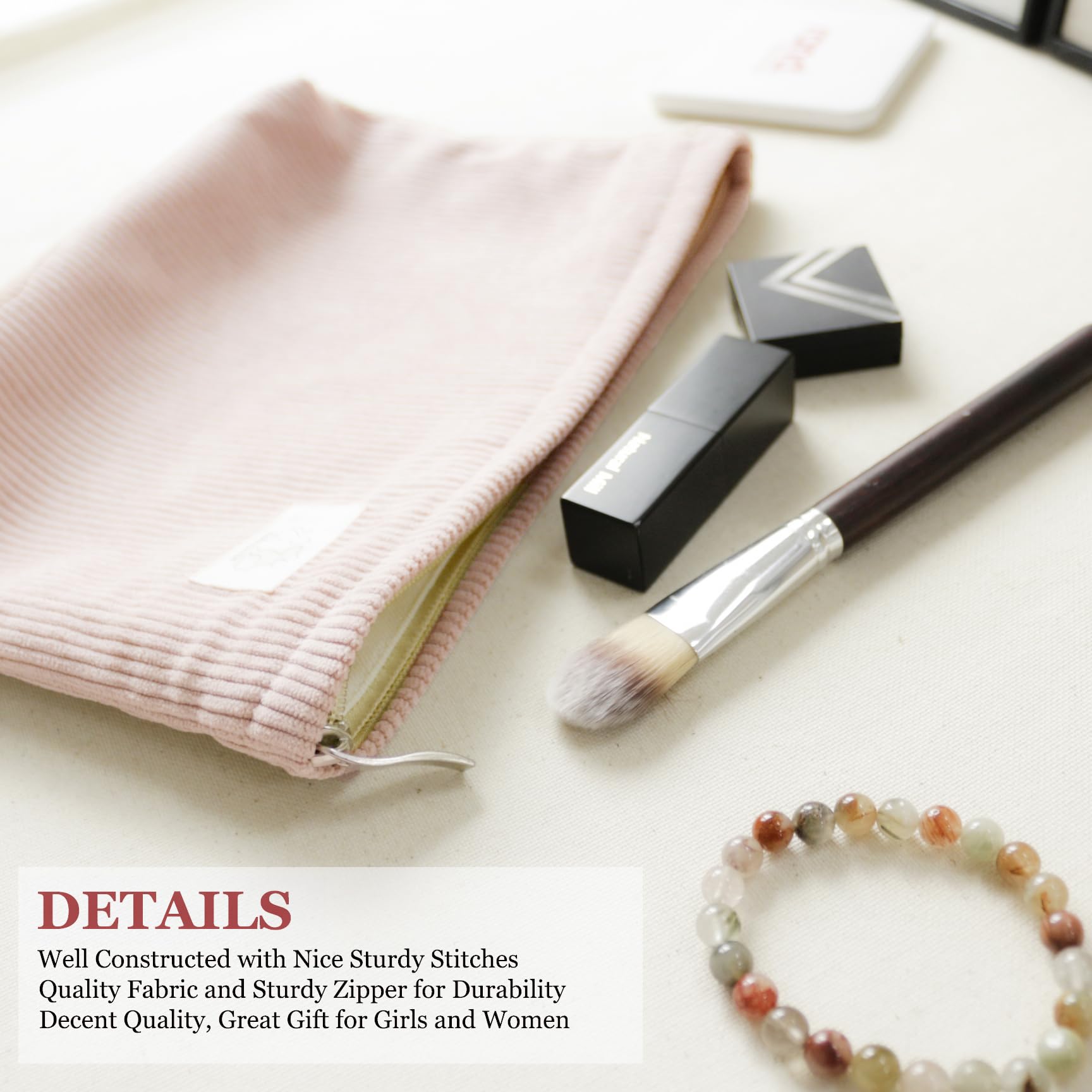 - Soft Corduroy and Durable Lining: crafted from premium corduroy and lined with sturdy canvas for added structure; smooth-glide zippers and reinforced stitching make this washable makeup pouches stylish, functional, and long-lasting