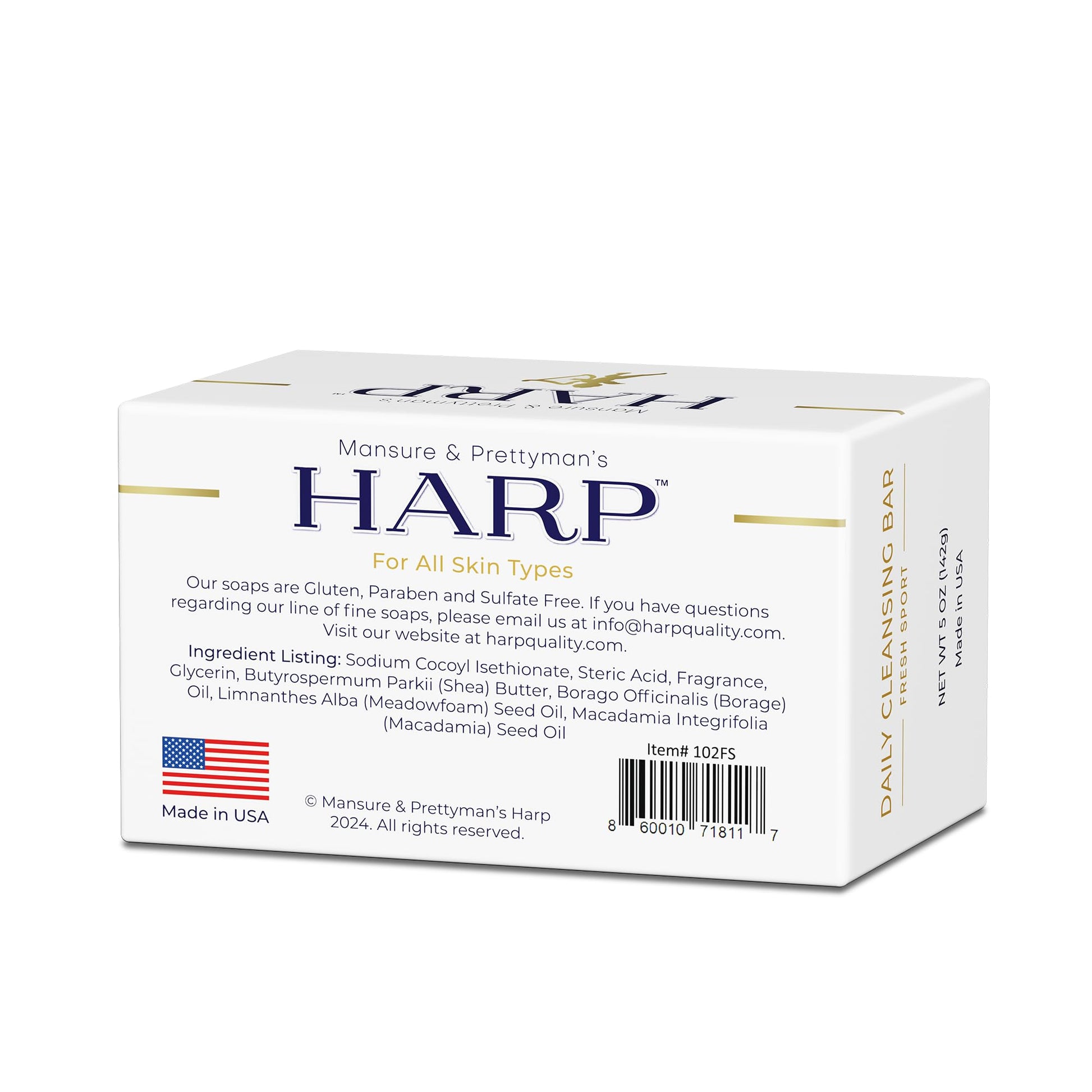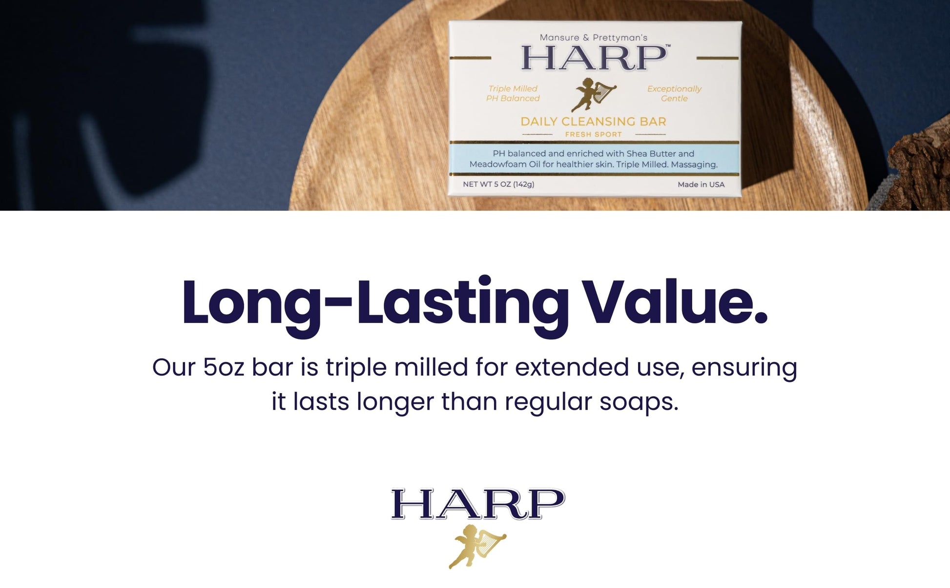 HARP pH-Balanced (5.0-6.0) Body Wash Bar. ZERO saponified oils. Protects Moisture Barrier. Gentle for Sensitive/Dry skin. + Shea Butter/Borage Oil. Non-Comedogenic. FRESH SPORT Fragrance. 5oz