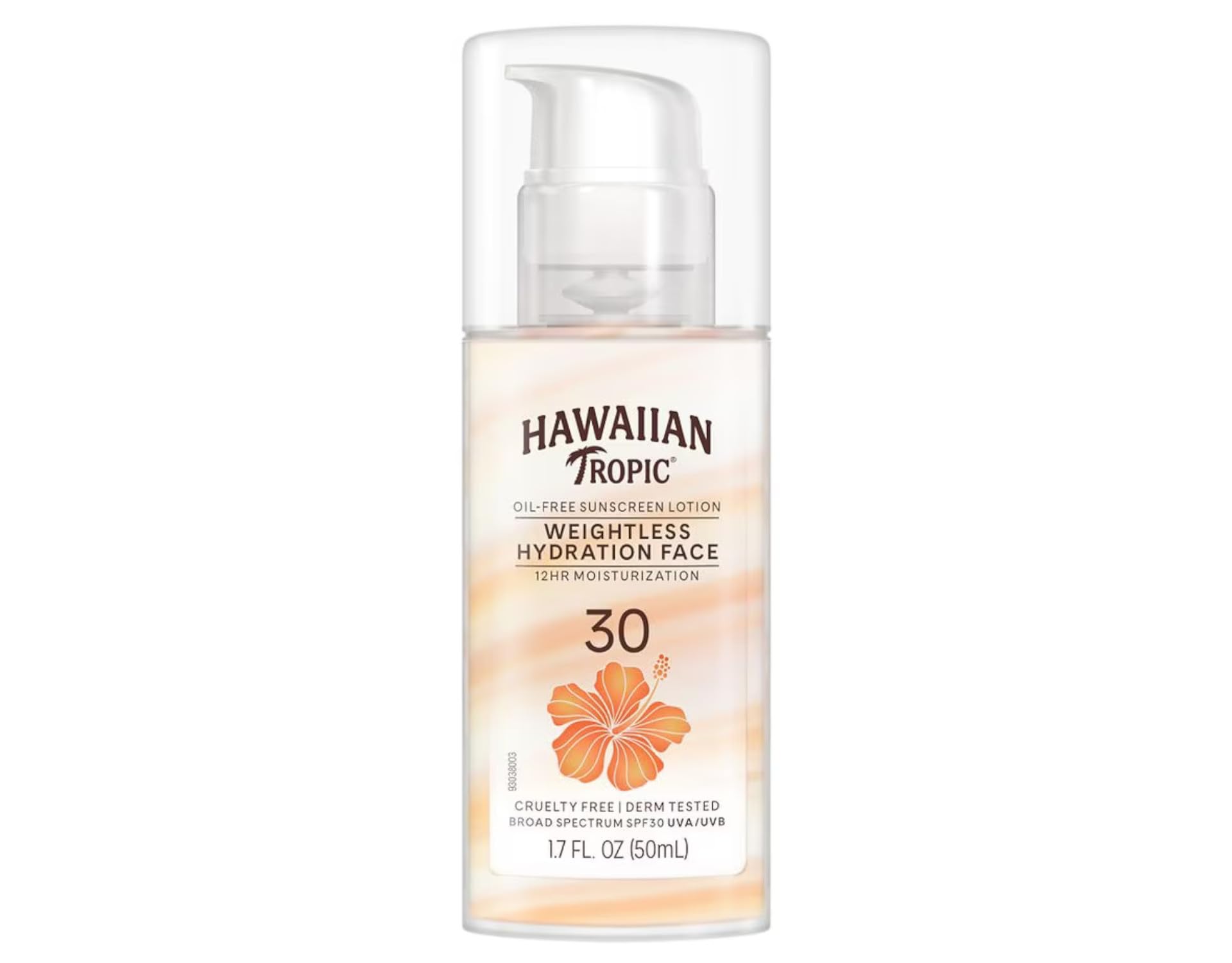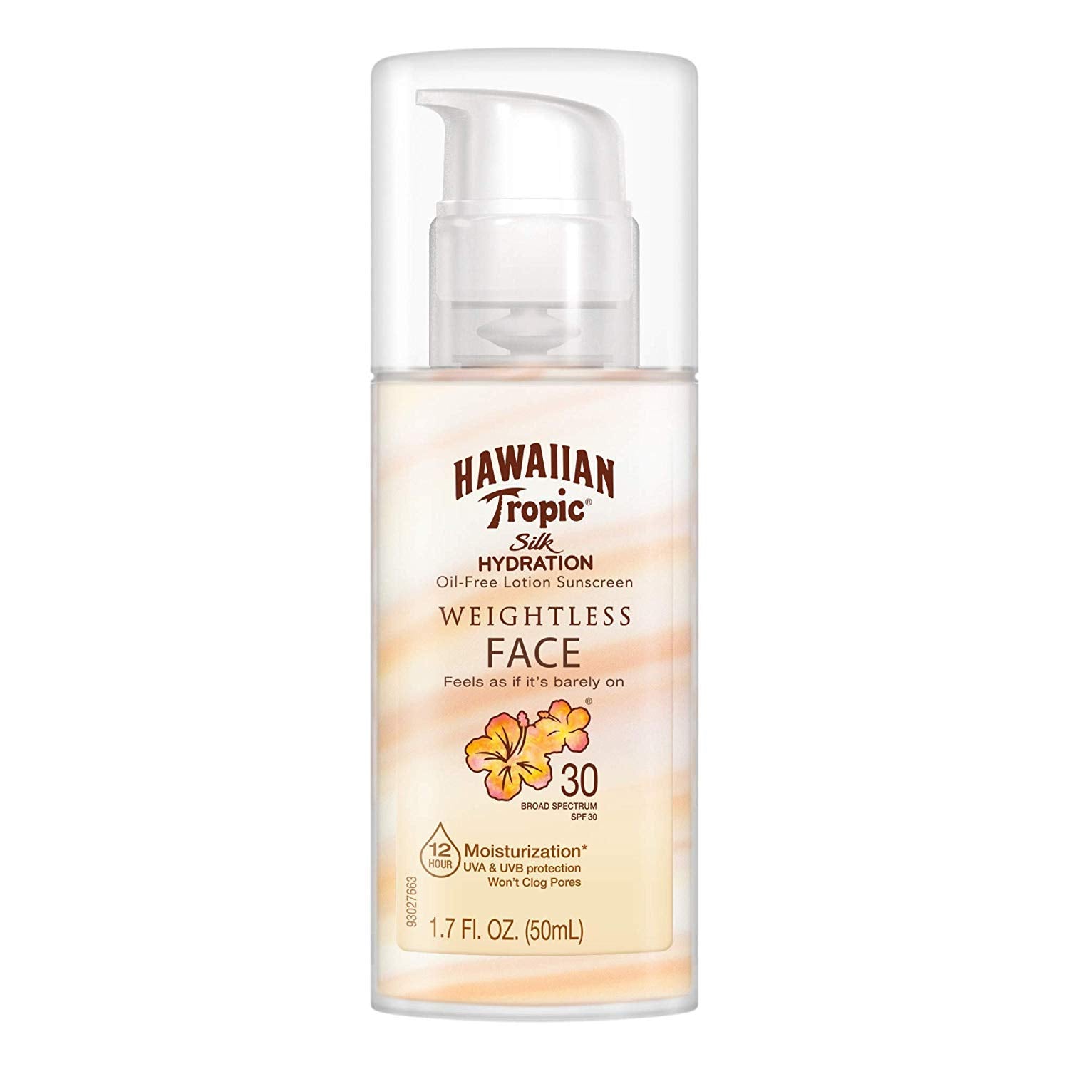 Details: Formulated for your face, Hawaiian Tropic Weightless Hydration Facial Sunscreen Lotion SPF 30 is perfect for your daily beauty routine. This lightweight, breathable lotion feels like it's barely there, with an ultra-light texture that feels light and soft on the skin, and a weightless matte finish so your skin can breathe. Our travel size sunscreen has a unique double-tape hydrating formula that delivers 12 hours of hydration. This travel size facial sunscreen is hypoallergenic, oil-free, and won't clog pores. The compact, portable bottle comes with an easy-to-use airless pump for easy all-day application. Hawaiian Tropic Silk Hydration Weightless Sunscreen is dermatologist tested and made with botanicals and island-inspired ingredients like papaya, mango, passion fruit, plumeria, guava, and aloe, for skin-loving sun care you can trust . We care for your skin with broad-spectrum UVA and UVB protection, and we also do our part to help care for the planet by creating a cruelty-free sunscreen free of oxybenzone and octinoxate.