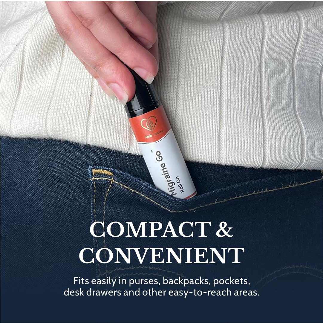 Herb Tantra Migraine Go Roll On | Headache Roll On Stick | Essential Oil Blend of Eucalyptus, Rosemary, Peppermint & Lavender | 100% Pure and Natural
