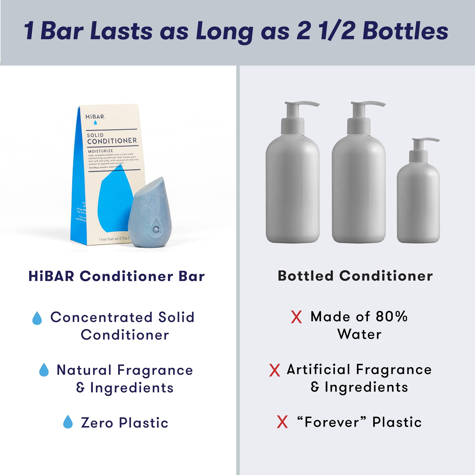 - SOLID CONDITIONER BAR - Meet HiBAR’s Moisturize Conditioner Bar – the ultimate rejuvenator for dry, thirsty, lifeless hair. This solid conditioner bar is specially formulated with a deeply nourishing blend of powerhouse ingredients.