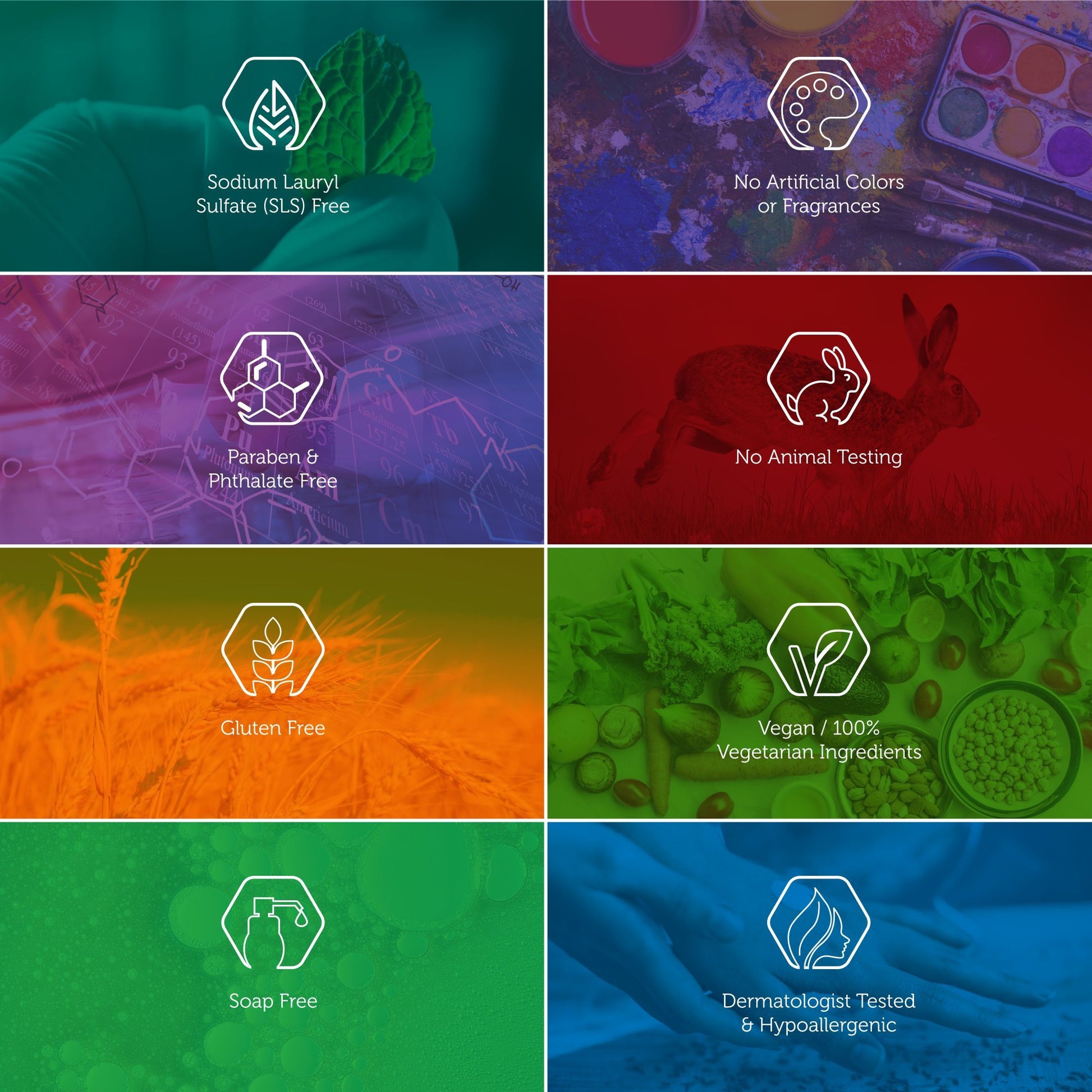 - FREE FROM COMMON CONCERNS: No parabens, sodium laurel sulfate (SLS), phthalates, petroleum, silicones, artificial fragrances or artificial colors, yet there is no compromise on sensory pleasure.
