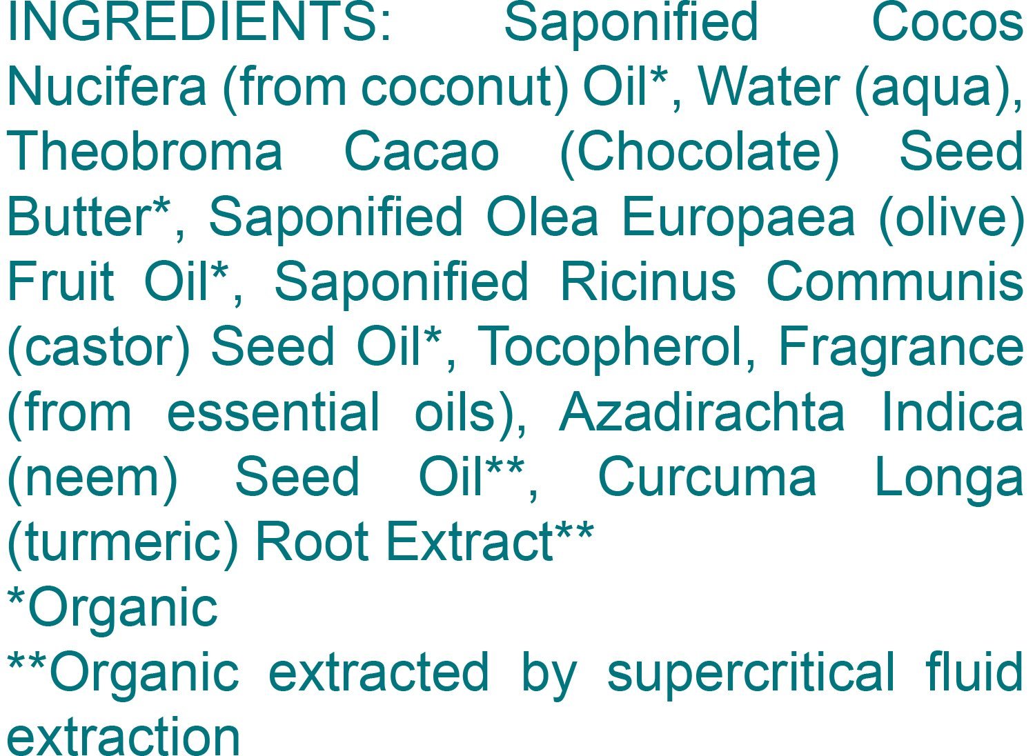 - WITH NEEM, TURMERIC & CACAO SEED BUTTER: Herbal ingredients with calming and soothing properties help cleanse and purify, improve resilience and keep your skin healthy and blemish free.