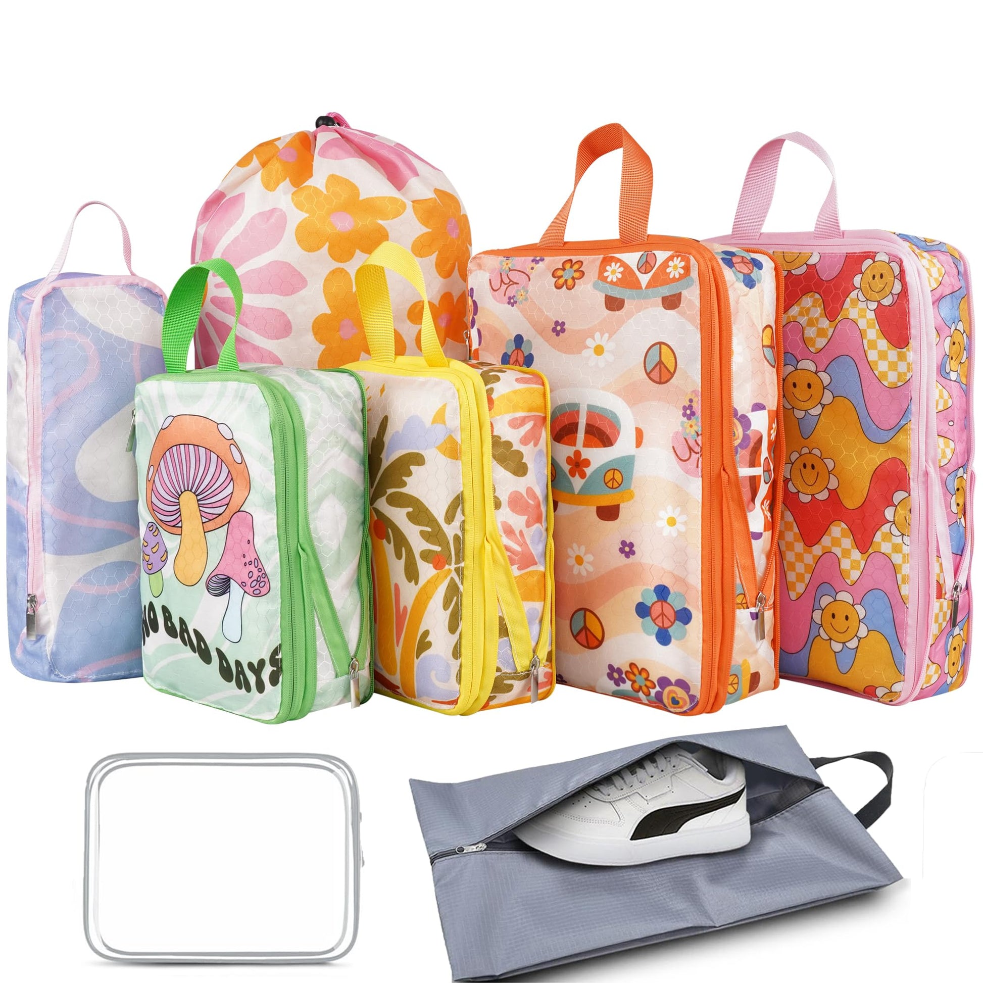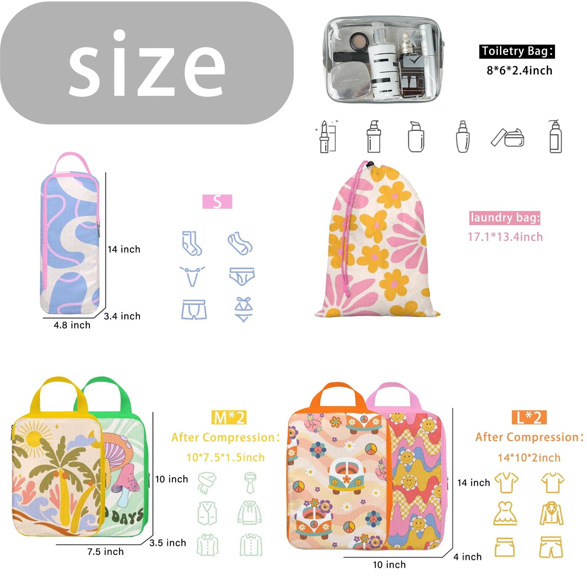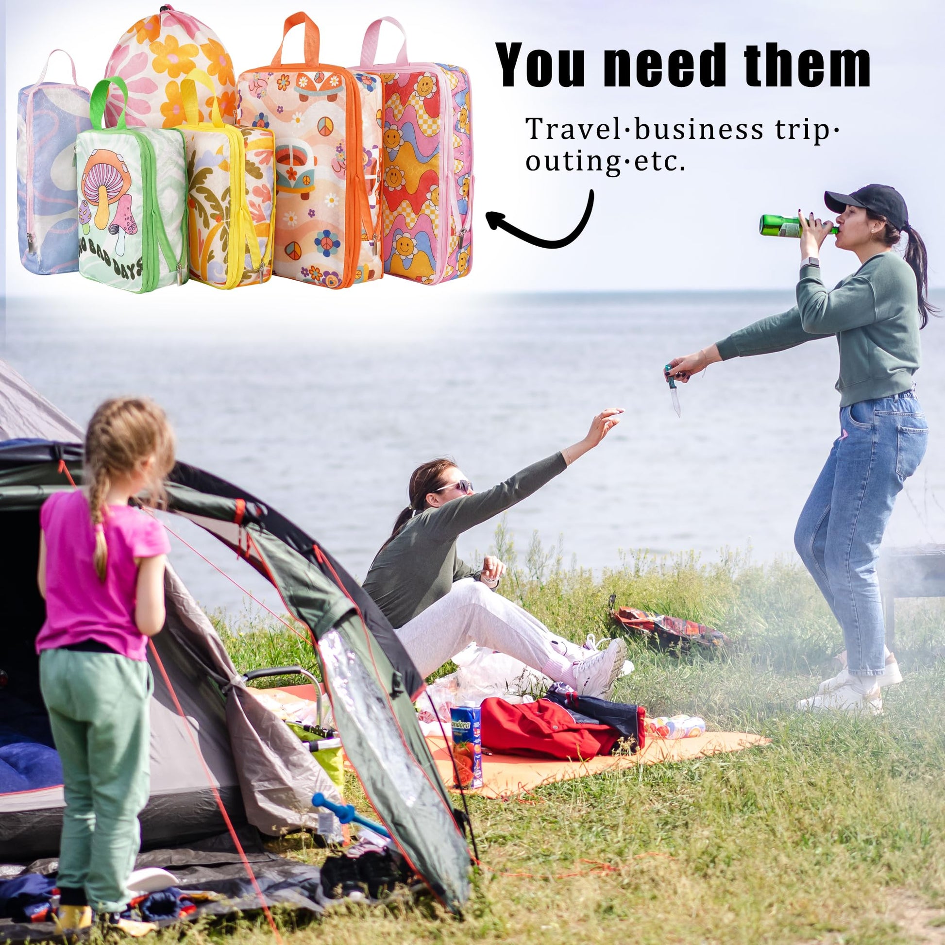 - Ideal Design for Travel Packing Cubes: Are you tired of rummaging through a jumble of clothes to find your T-shirts while traveling? Worried about leaving valuables behind in your hotel room? With our compression travel cubes, these worries disappear. Each packing cube features a unique pattern design, which makes it easy to find clothes while allowing you to have your own travel style and stay organized easily