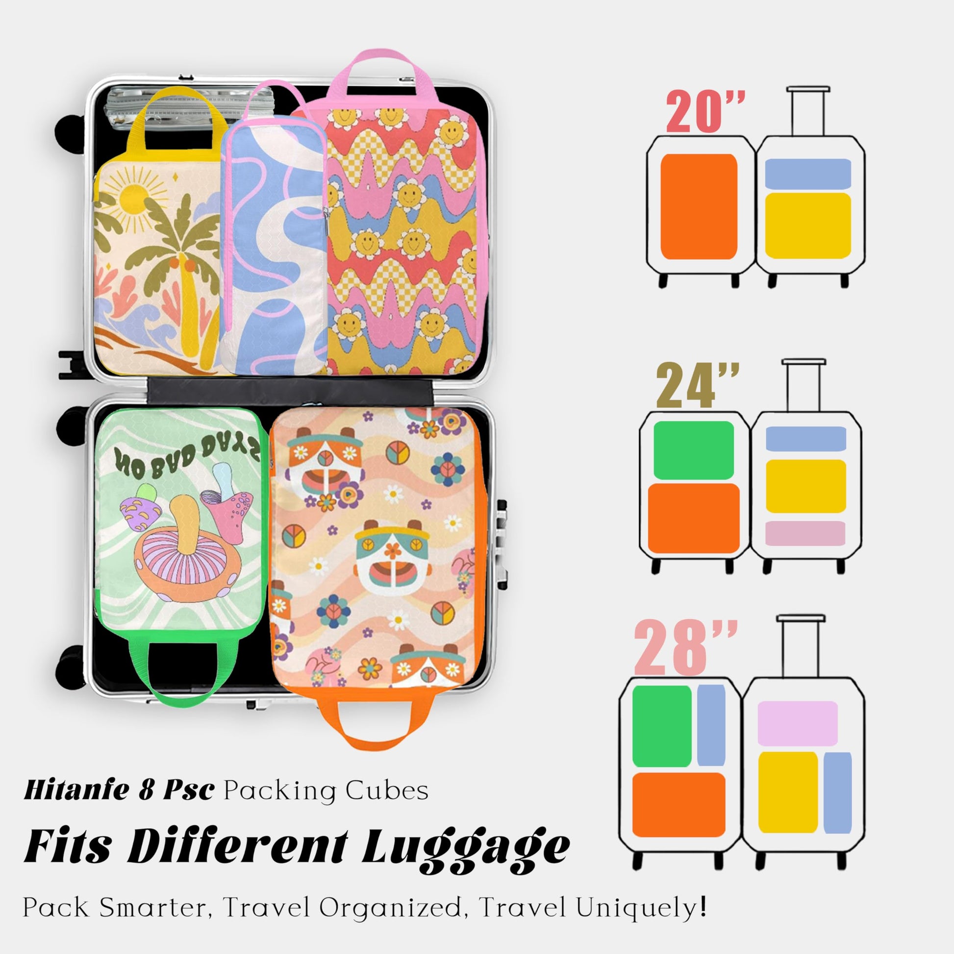 Hitanfe 8 Pcs Compression Packing Cubes Travel for Suitcases, Waterproof Luggage Organizer Washable Storage Bags Set for Backpack Travel- Packaging Cubes for Carry-Ons and Storage