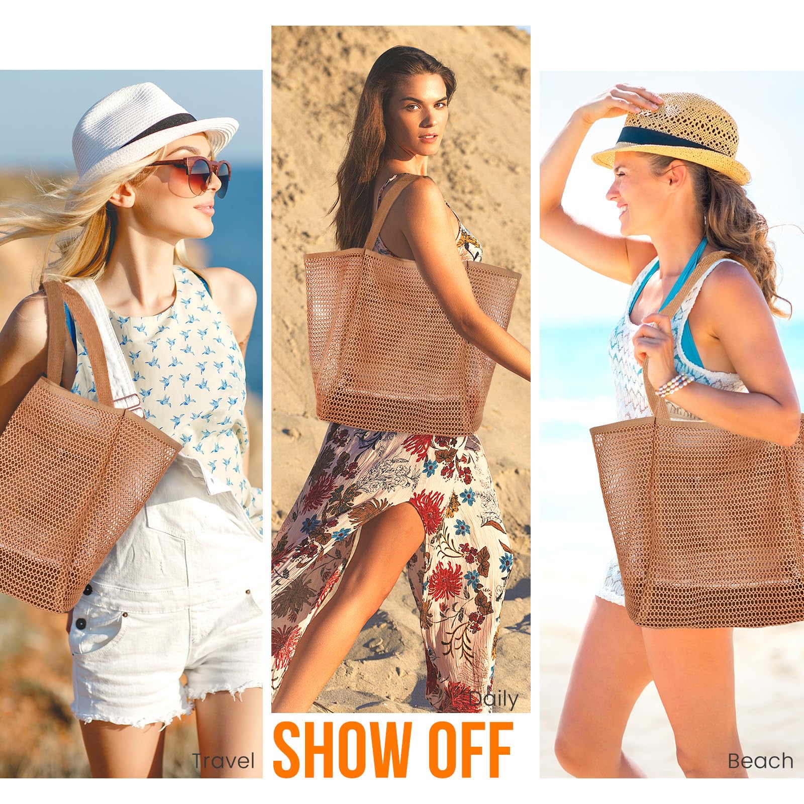 - Perfect for Women’s Vacations & Family Trips: Designed for beach lovers and pool-goers, this mesh beach tote is ideal for carrying towels, snacks, and summer essentials. Its sand-resistant base and easy-clean material make it a hassle-free choice for family beach days or solo travel adventures.