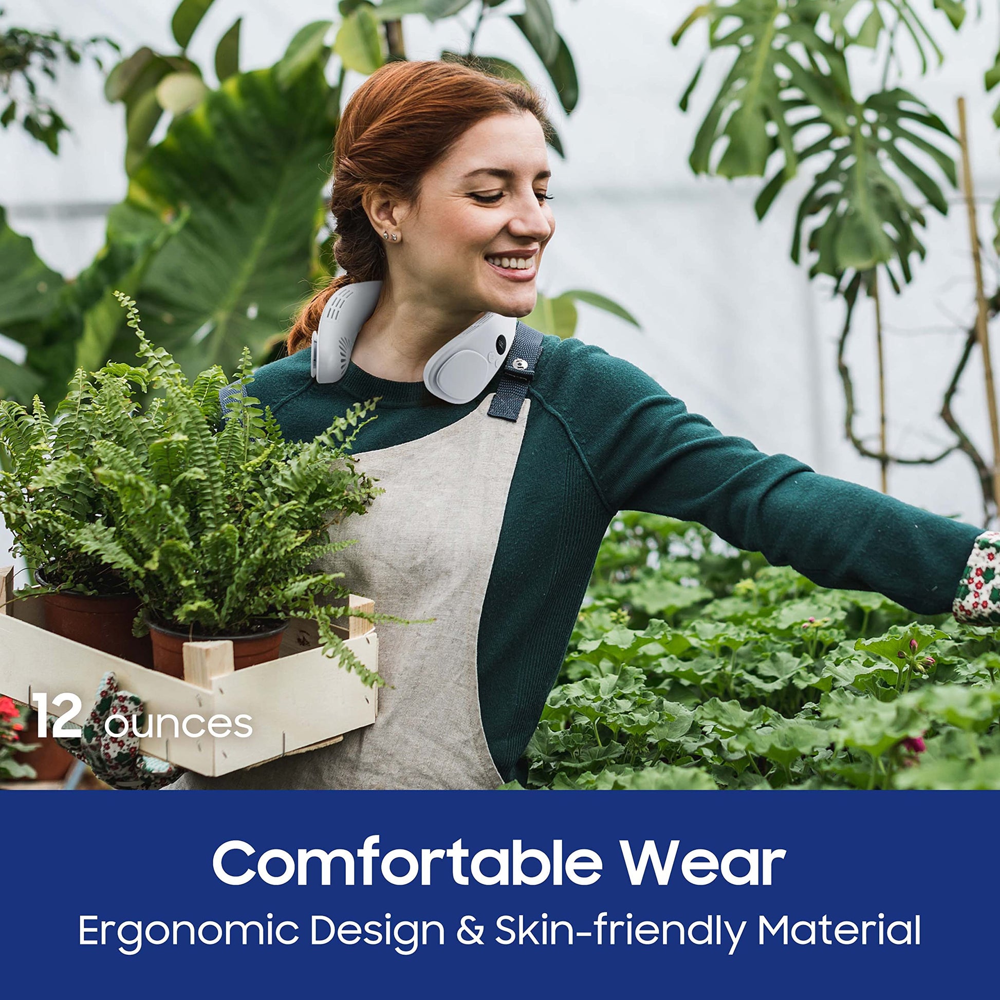 - COMFORTABLE TO WEAR: This neck cooling fan is created from skin-friendly and durable materials. With ergonomic and flexible design, you never have to worry about slippage during your walks or workouts. A stylish and understated design gives the neck cooler a premium look