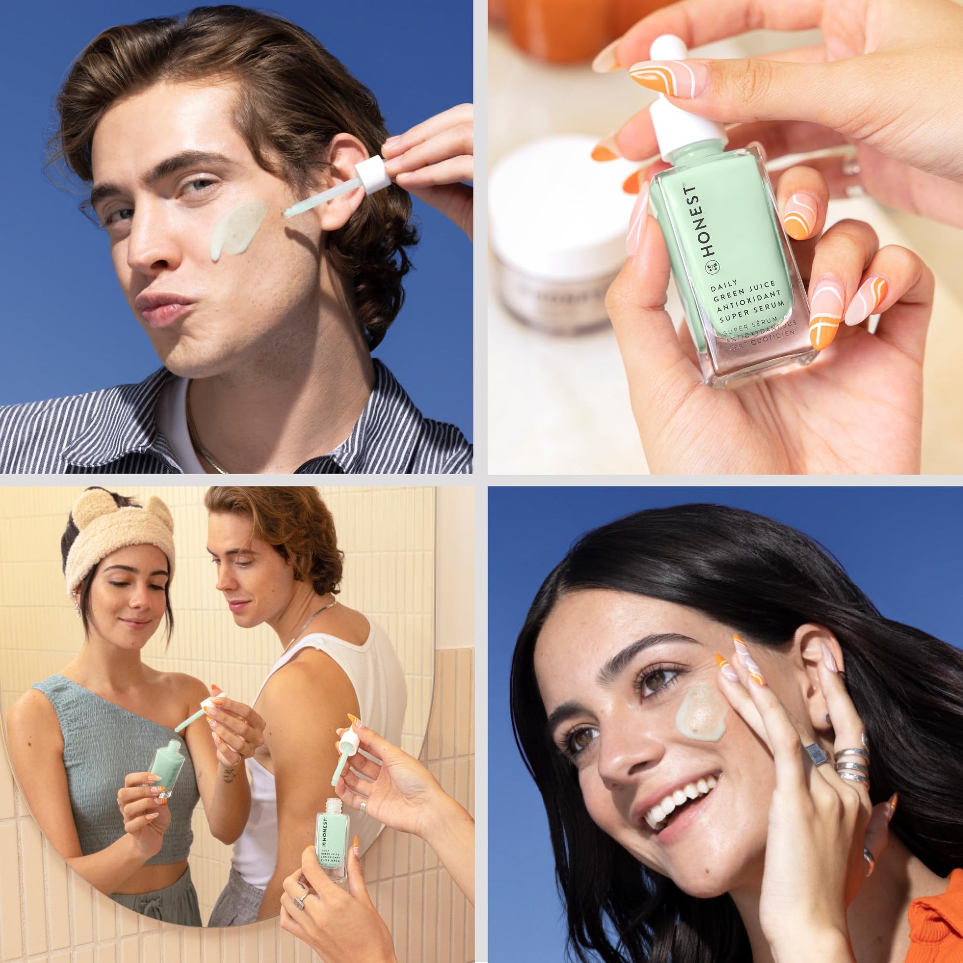 Honest Beauty Never Basic Skincare Duo | Mini Hyaluronic Acid Infused Hydrogel Cream (0.57 fl oz) + Mini Green Juice Antioxidant Serum (0.4 fl oz) | EWG Verified, Vegan + Cruelty Free
