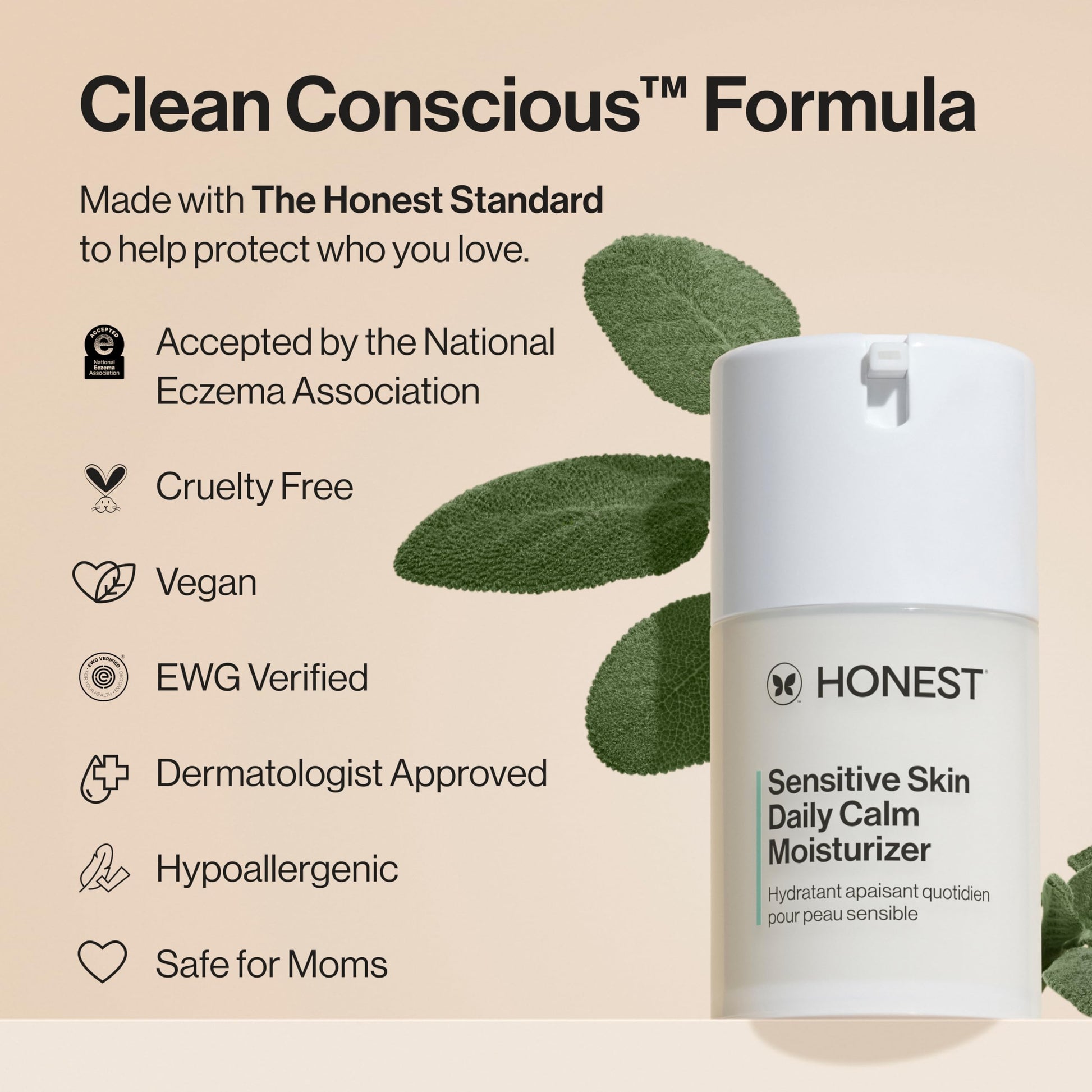 Honest Beauty Sensitive Skin Daily Calm Lightweight Moisturizer | Reduces Redness, Hydrates, + Calms Skin | Hypoallergenic, Fragrance Free, Vegan | 1.7 fl oz