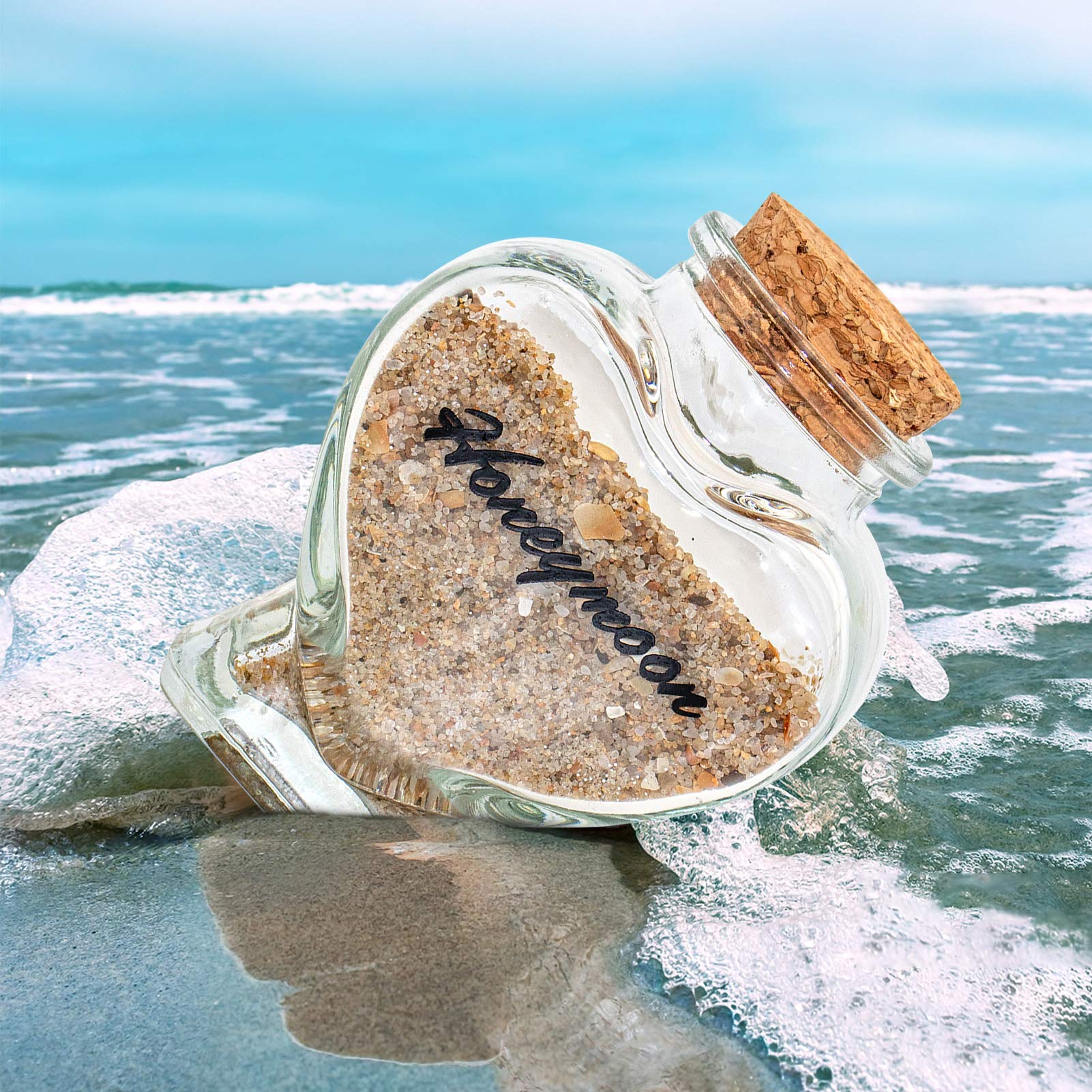 - HONEYMOON GIFTS: Unique and romantic honeymoon gifts are the best choice for newlyweds and fiances. They will keep the sand together in this jar on the beach as a souvenir for their honeymoon and put it in a beautiful gift box for permanent preservation.