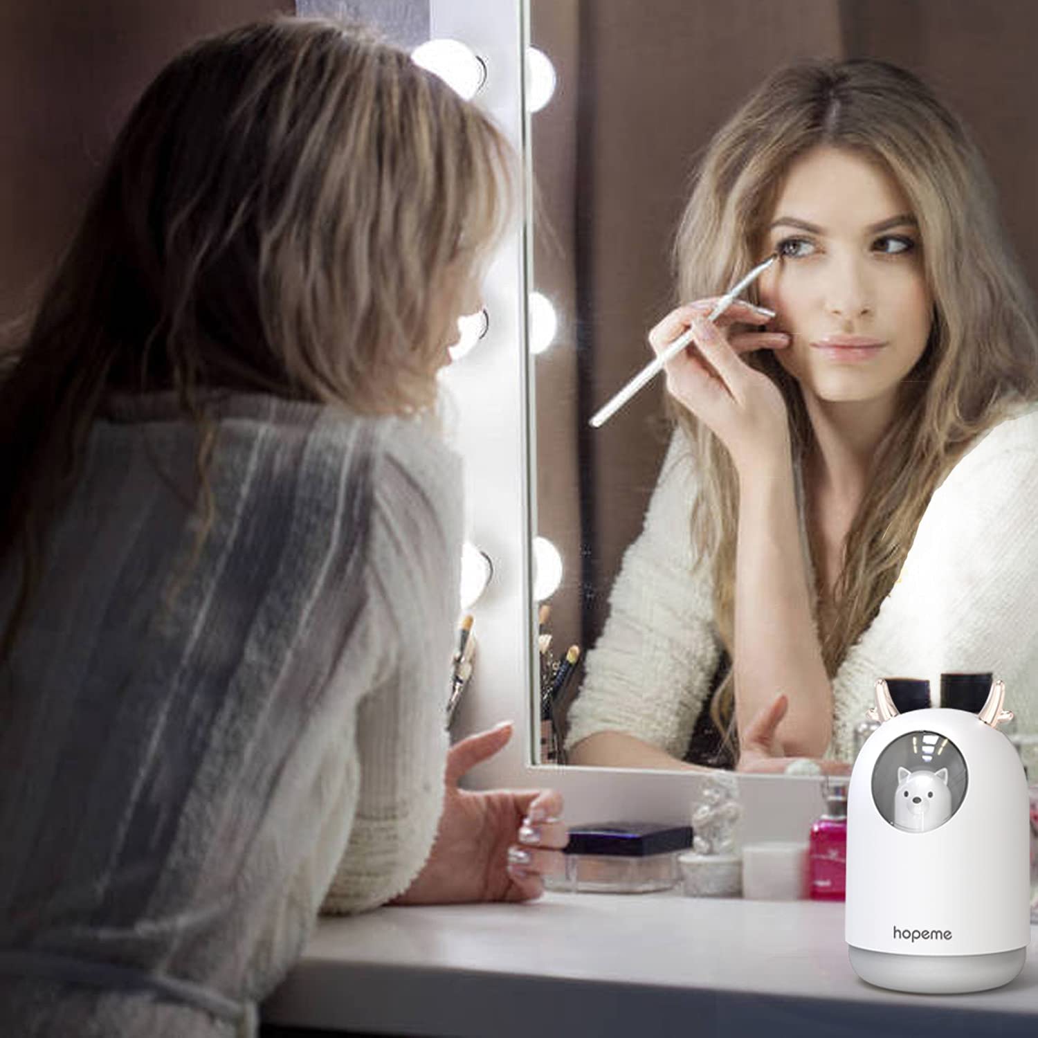 HOPEME Cool Mist USB Humidifier with Adjustable Mist Mode, 300ml Water Tank Lasts Up to 10 Hours, 7 Color LED Lights Changing, Waterless Auto Shut-off for Bedroom, Home, Office (White)…