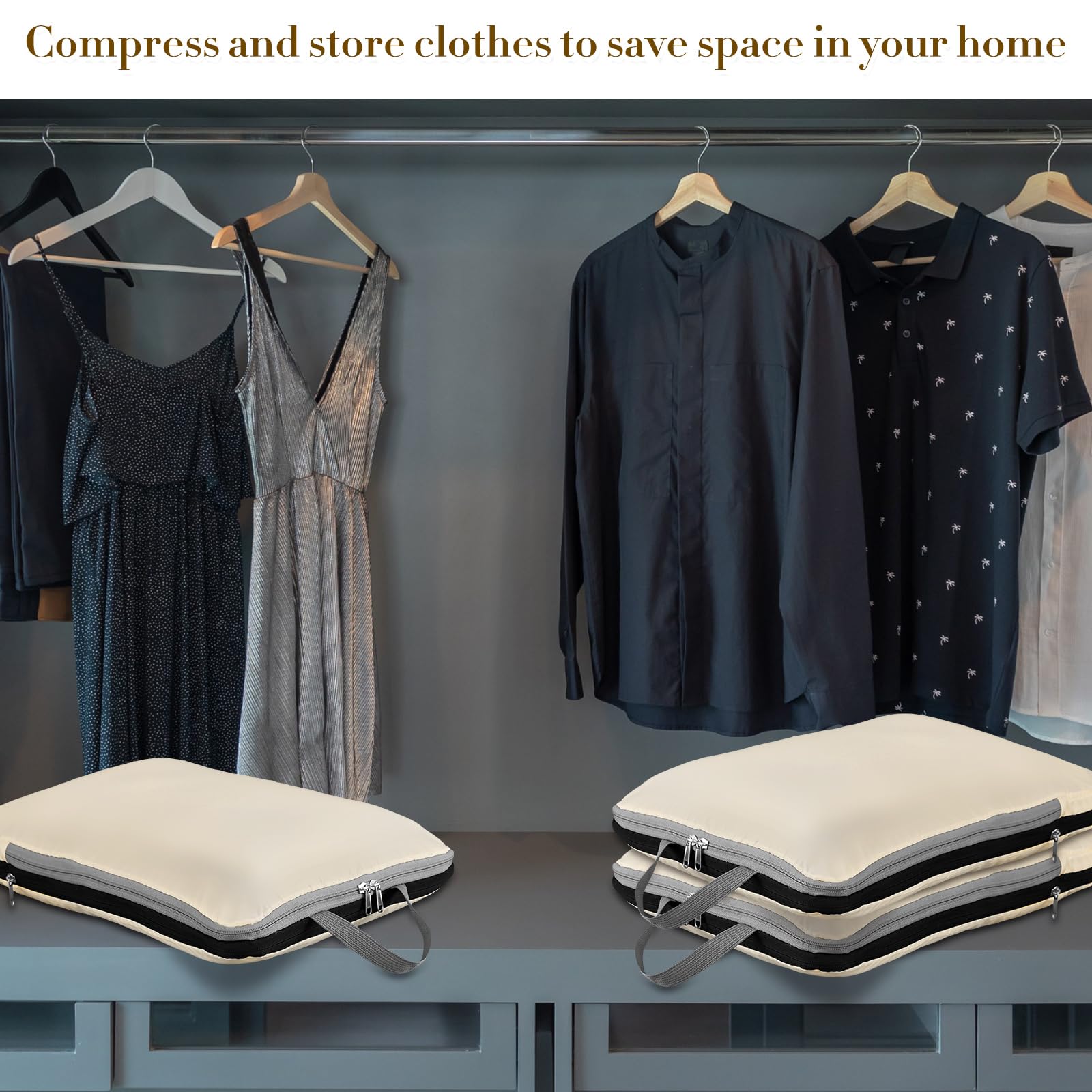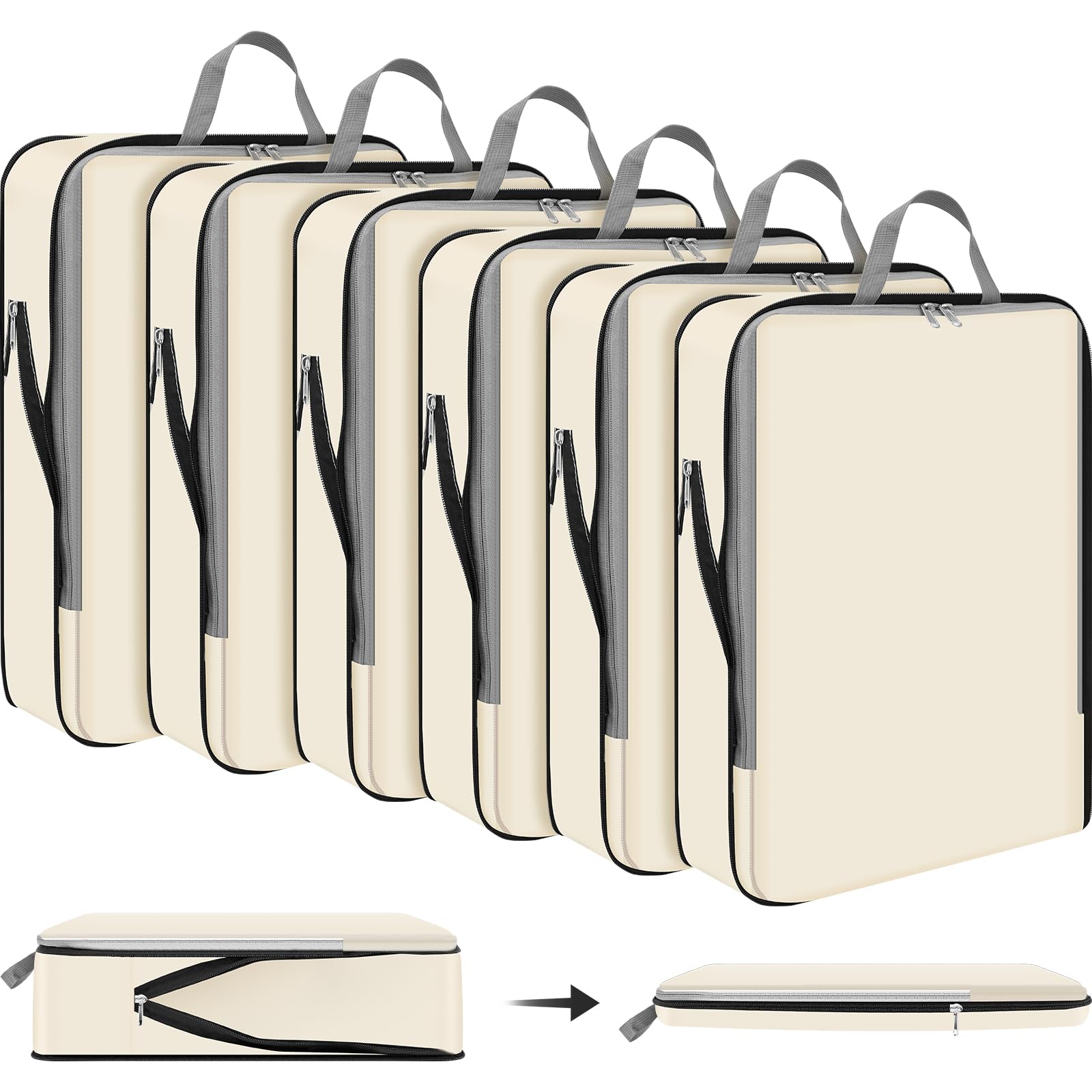 Hosuly 6 Pcs 17.3 x 12.6'' Compression Packing Cube Bag Extra Large Travel Expandable Space Saving Organizers XL for Luggage Storage(Beige)