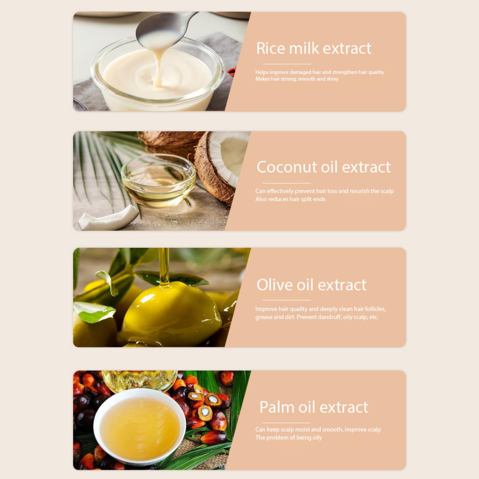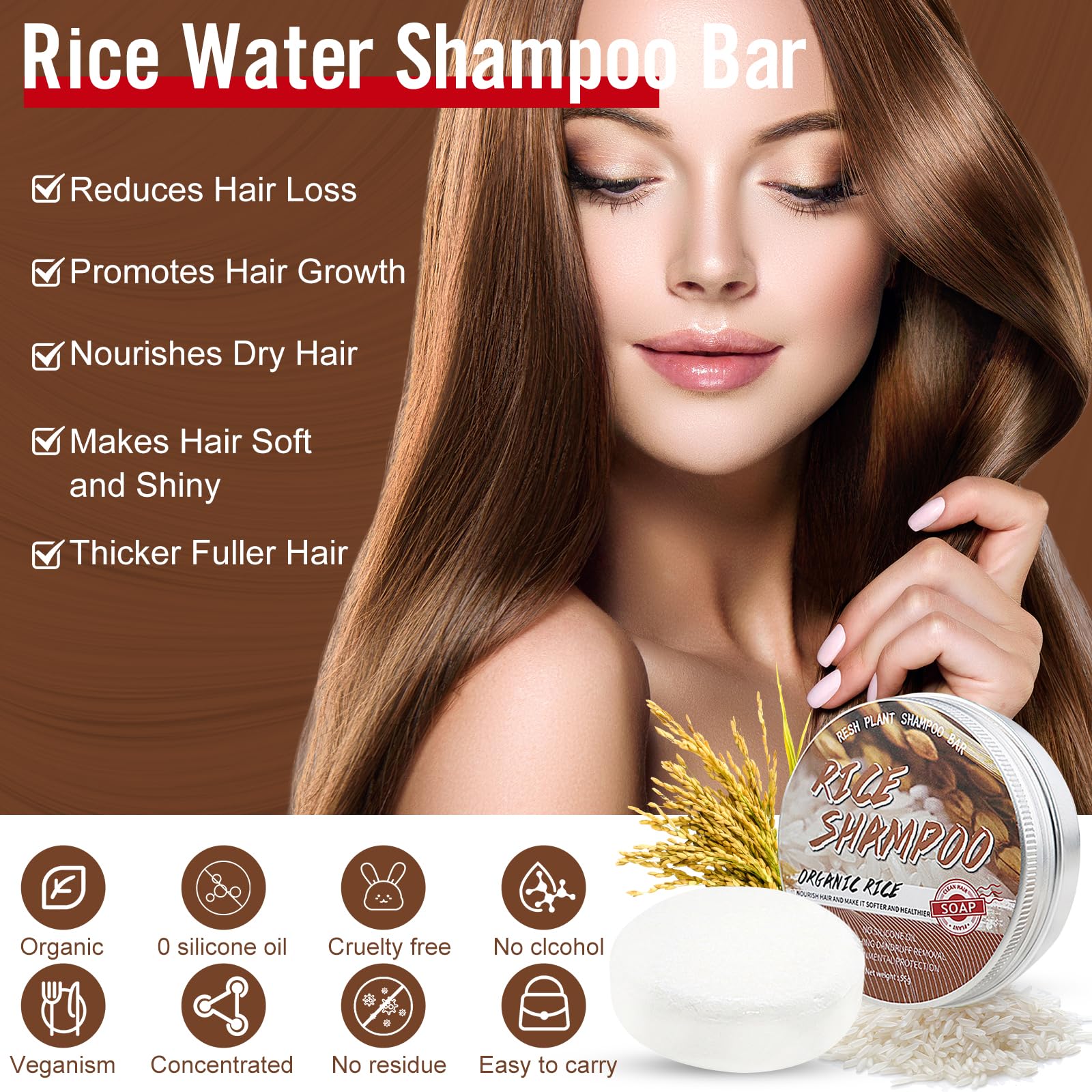 - RICE WATER SHAMPOO SOAP FOR HAIR GROWTH - Rice water is known for its rich nutrition with essential amino acids, proteins, and vitamins that nourishes and moisturizes the scalp, promotes hair growth and prevents shedding,strengthen hair root and Increase overall hair volume, Repair damaged hair and balance oily scalp,makes hair smooth and supple.