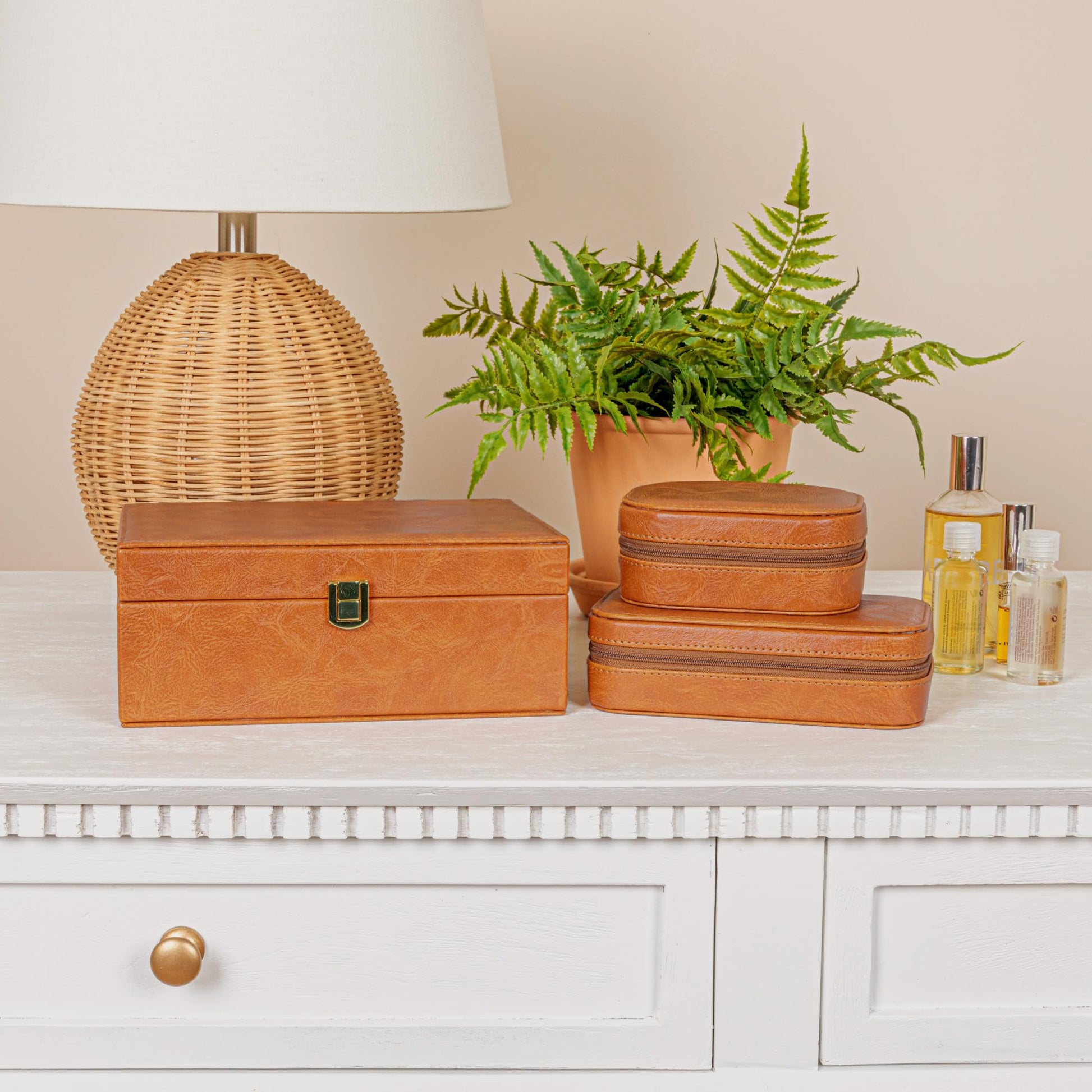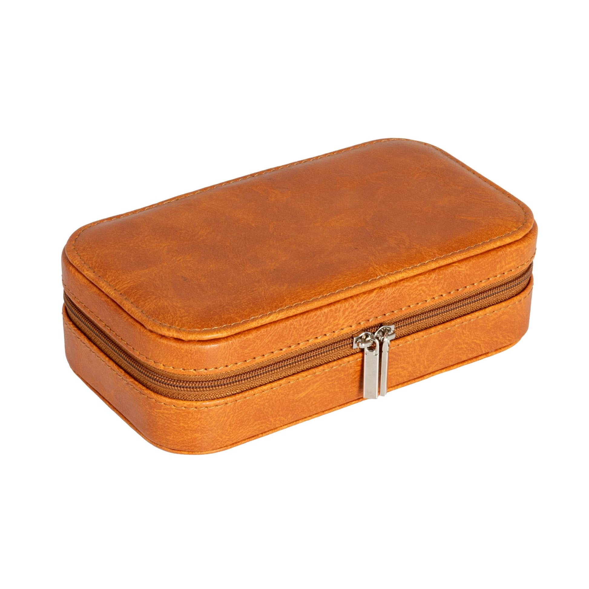 Household Essentials Vegan Leather Travel Jewelry Organizer Box, Caramel Color