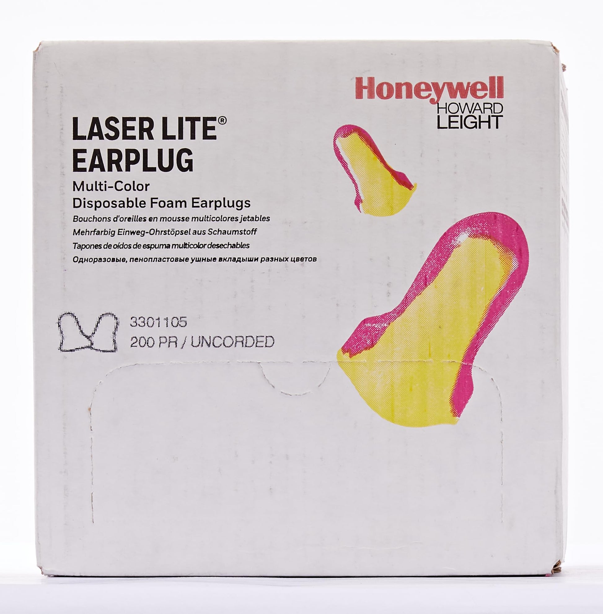 Howard Leight by Honeywell Laser Lite High Visibility Disposable Foam Earplugs, Pink/Yellow , 200-Pairs (LL-1) - 3301105