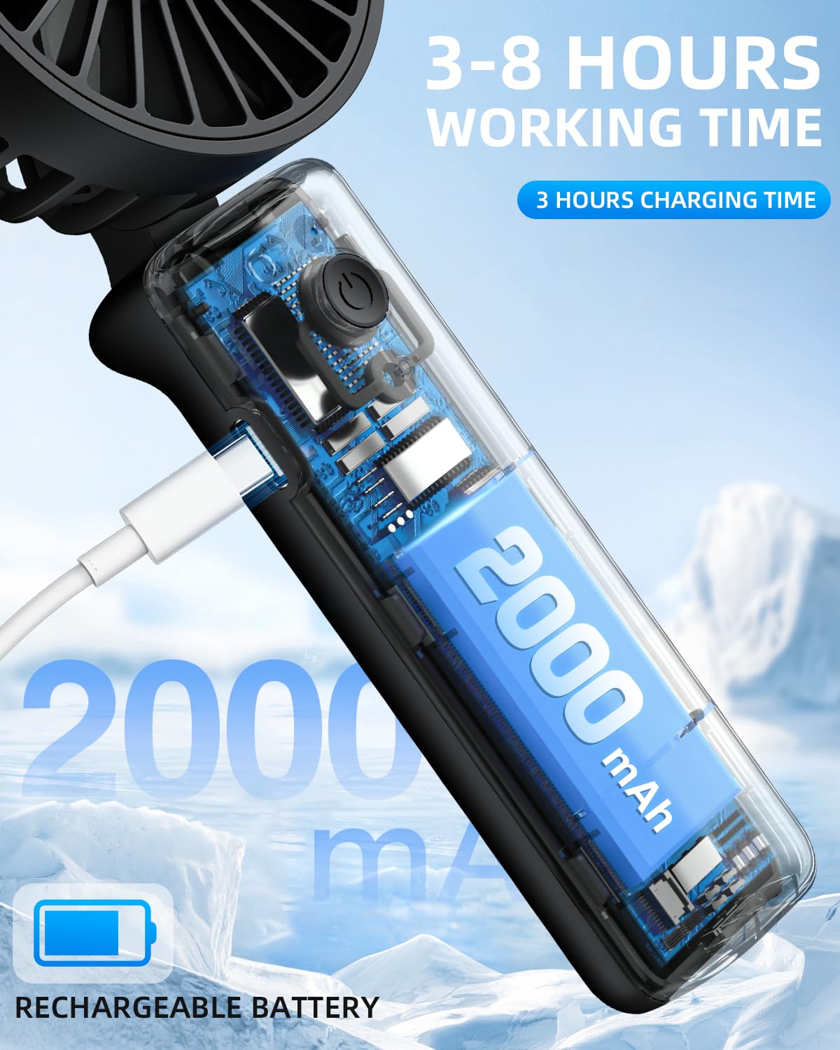 - ❅【2000mAh LONG BATTERY LIFE & UP TO 8H COOLING TIME】The mini fan can be fully charged in only 2.5 hours, can work continuously for 3-8 hours. With the newly TYPE-C charging port for faster charging speed.
